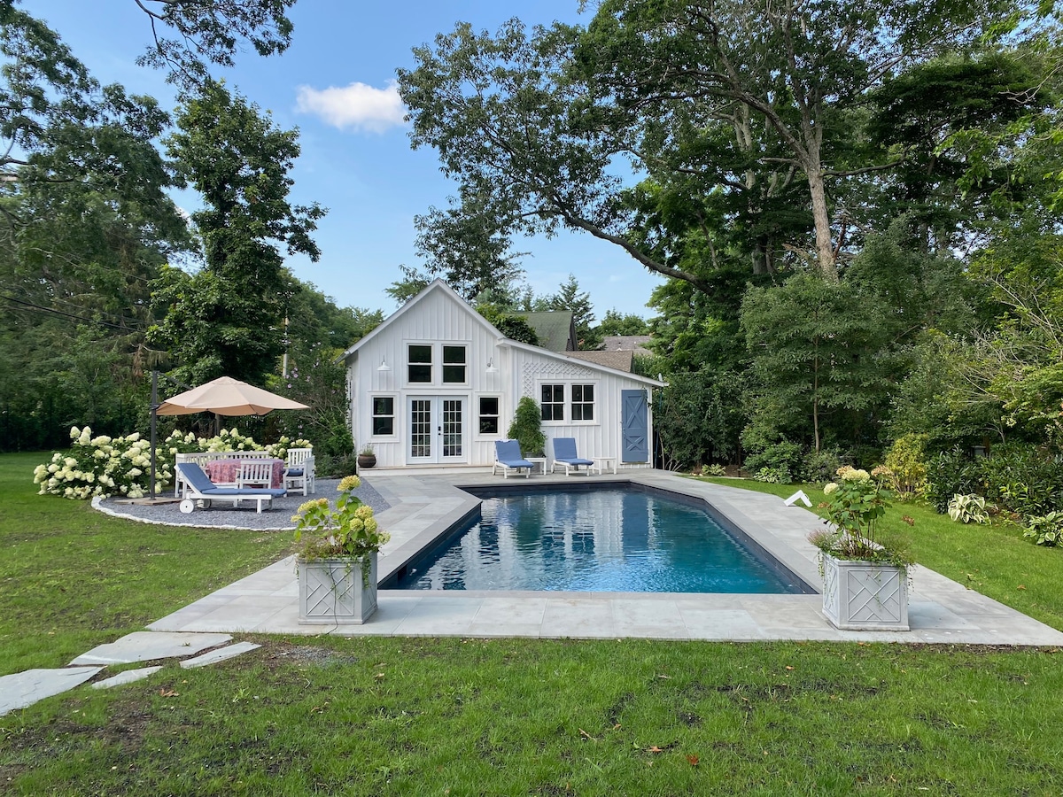 Stylish home + Pool House walk to town/jitney/park