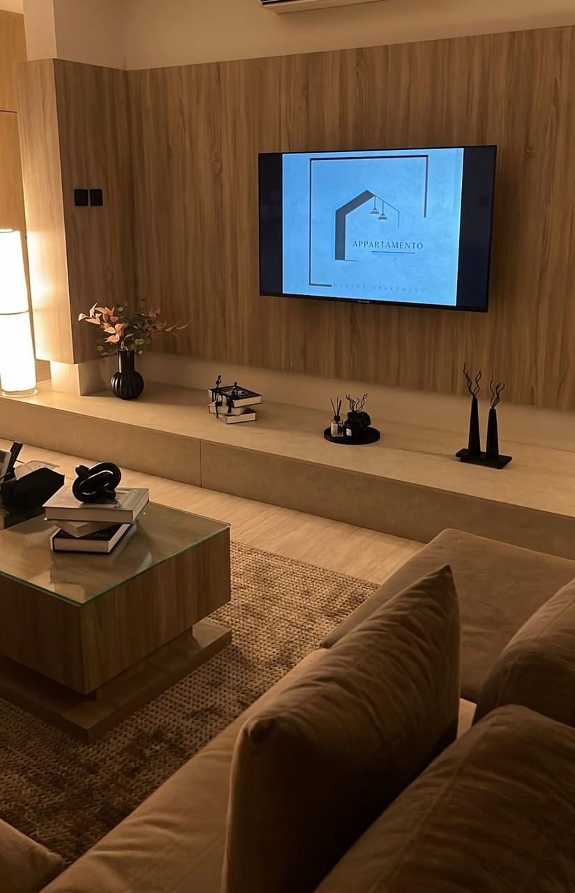 🧡 Um estúdio acolhedor com um design único e excepcional que oferece uma experiência de vida inesquecível, equipado com a mais recente tecnologia e aparelhos elétricos. O sofá que se transforma em um assento de cinema tem vista para uma tela de 75 polegadas e há uma jacuzzi quente localizada no luxuoso bairro de Al-Nahda, na King Road, a principal artéria de Jeddah. Você mora ao lado da Corniche, dos shoppings mais luxuosos, restaurantes, aeroporto e todos os serviços. 🏖️🏄🏻♀️🌅