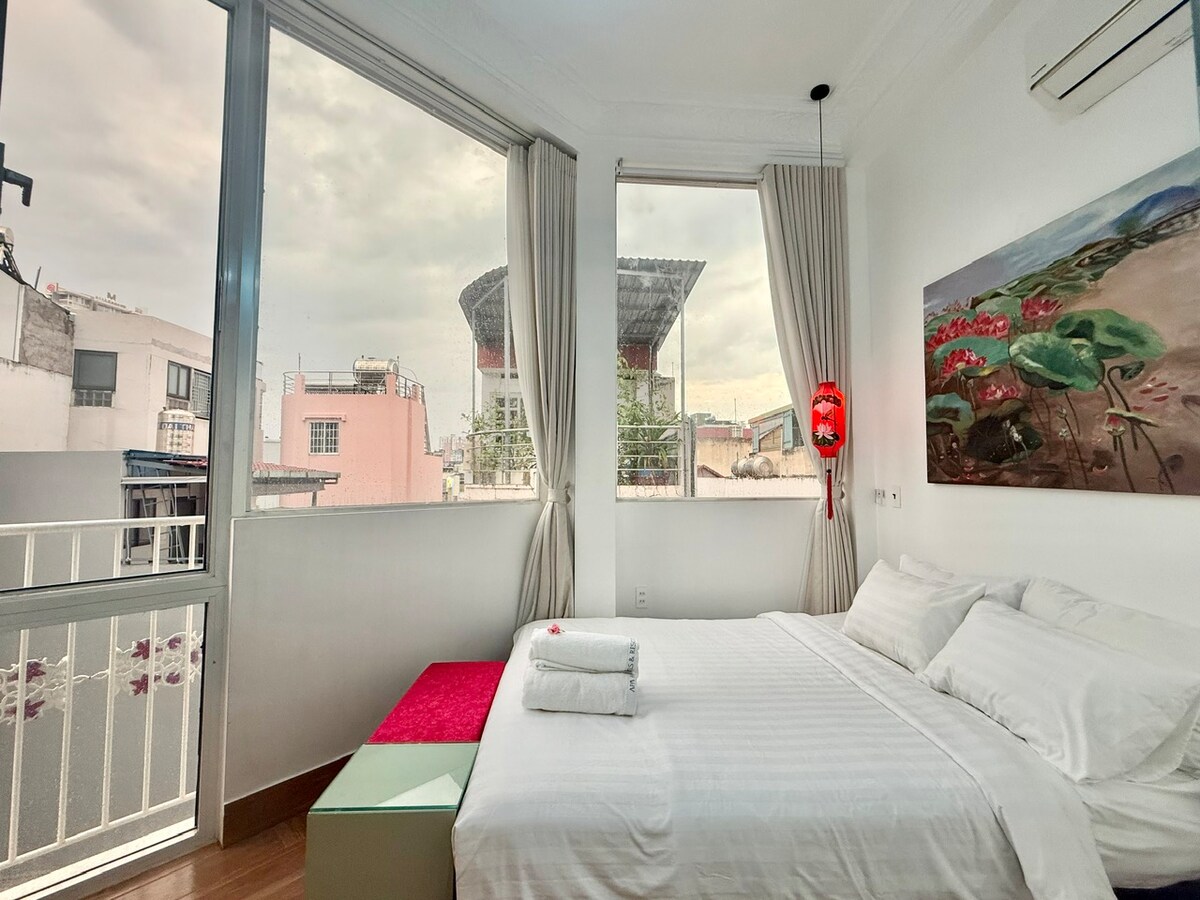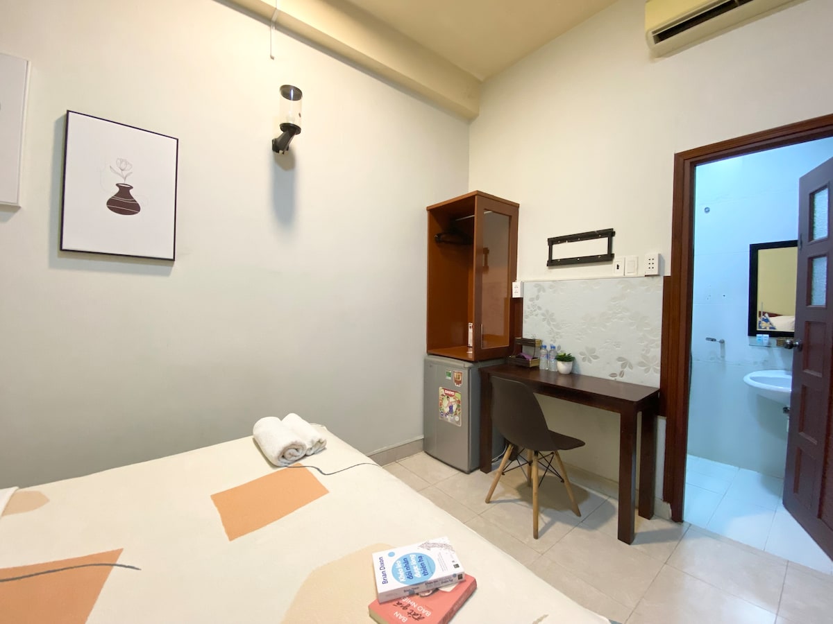 O nosso espaço está localizado em um beco no centro da cidade. É uma ótima localização perto de muitos cafés, lojas de alimentos, restaurante, mercado, academia, etc. - Add: Nguyen Dinh Chieu st, District 3 (5 min to District 1) - cama de casal e colchão macio - Elevador, Ar Condicionado, TV e Cabo, Wi-Fi, Mesa, Cadeira, Roupeiro, Cofre - Cozinha: geladeira, fogão de indução, prato, tigela, prato, panela... - Banheiro privativo: chuveiro quente e cheio de itens essenciais - Limpeza e estacionamento GRATUITOS - A recepcionista ajudará os hóspedes a fazer o check-in