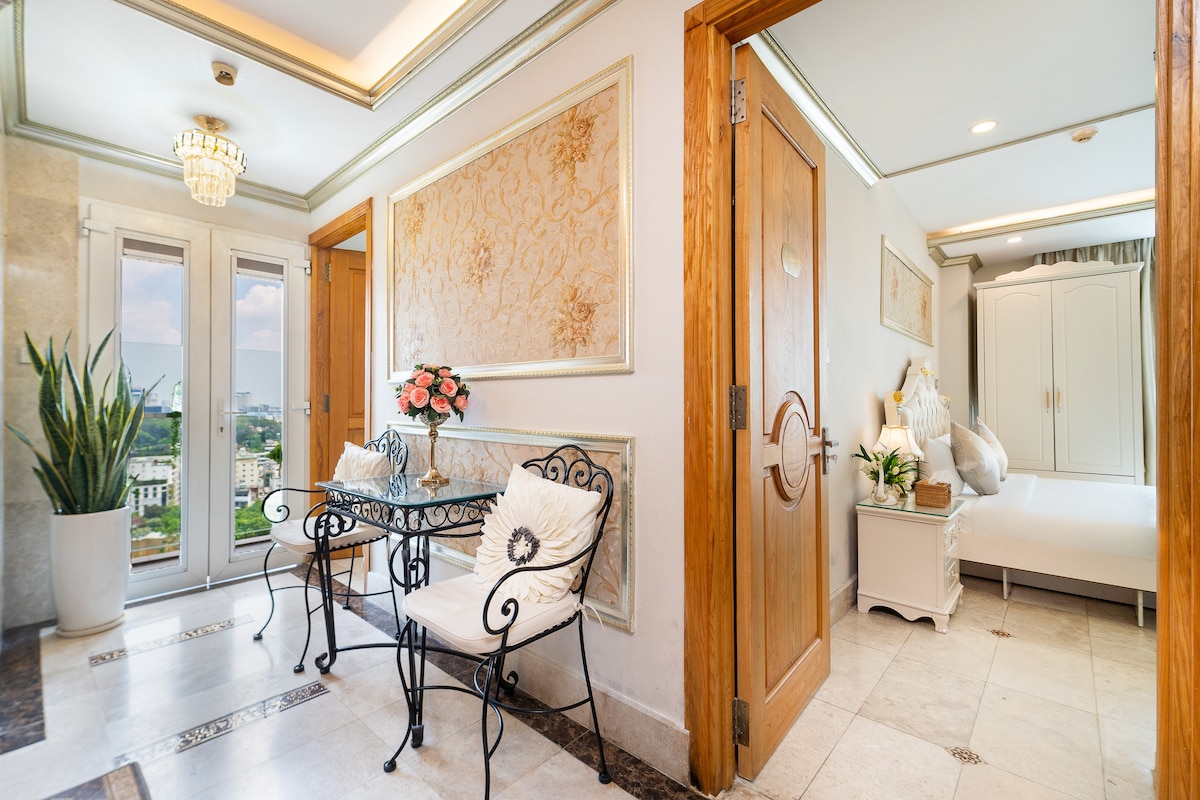 Bem-vindo ao nosso santuário cheio de sol, um apartamento de 140 m2, no coração da vibrante Saigon. Mergulhe nas vistas deslumbrantes, descubra atrações próximas e saboreie cozinhas locais e internacionais em nosso bairro central mais bem avaliado. - 3 Quartos / 2 Banheiros com Camas Confortáveis (1 suíte) - Ao lado do Palácio da Independência, A MELHOR localização e vistas em Saigon - Nossa equipe cumprimentando você na chegada - Lanches de cortesia e água potável Entre em contato conosco e comece a planejar!