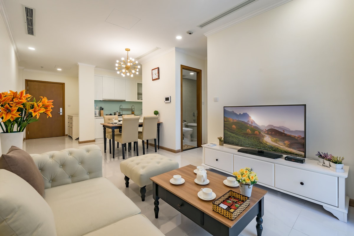 Você usará todo o apartamento privativo de 1 quarto e 1 banheiro. O apartamento tem um design elegante e sofisticado ao lado do Landmark 81 O apartamento está totalmente equipado, como Smart Tivi - Internet, cozinha com utensílios de cozinha e sabonete de banho serão incluídos *Observe que, se você tiver algum pedido especial, confirme-nos antes de fazer a reserva, porque podemos alterar de forma flexível o apto para se adequar ao seu pedido, há apenas diferenças no design da decoração e na vista, sinta-se à vontade com isso.