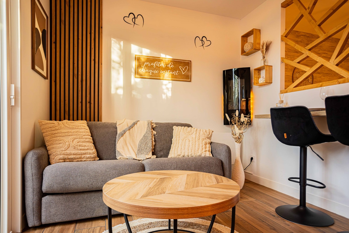 La Cachette Perdue, a 300 metros da praia, do porto, este pequeno apartamento atípico de um quarto tem tudo o que você precisa para relaxar como um casal. Mini banho turco no chuveiro, banheira de 2 lugares (que está substituindo o banheiro nórdico na foto 1) , cinema em casa de 5,1 lugares no quarto. *Para ter uma estadia agradável no verão e no inverno, emprestamos duas bicicletas sem nenhum custo extra. Eles são emprestados sem custo. ⚠️ acomodação não recomendada para pessoas com mais de 60 anos e para bebês.