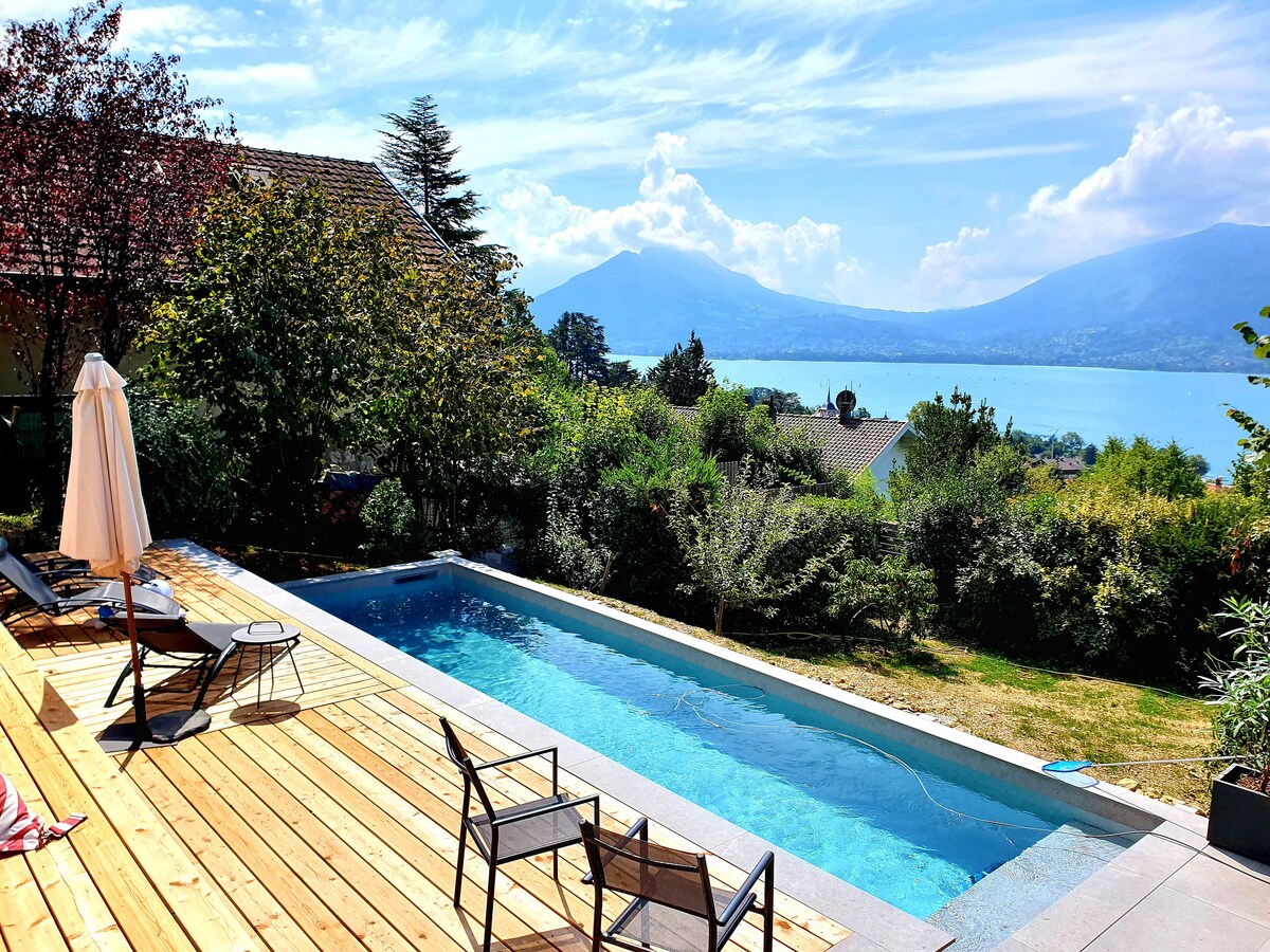 Saint-Jorioz, perto de Annecy, moradia soberba em calma muito equipada, piscina, 8 pessoas. Casa muito bonita de 130 m2, idealmente situada com piscina. Soberbo terreno arborizado e muito ensolarado de 1300 m2, vista clara sobre a montanha. A 2 km do centro de Saint-Jorioz, a 800 m do lago, a 400 m da ciclovia e a 10 km do centro de Annecy. Máximo sol o dia todo. Você vai apreciar a calma, a vista, a piscina (com natação contra a corrente) eo selo da casa.