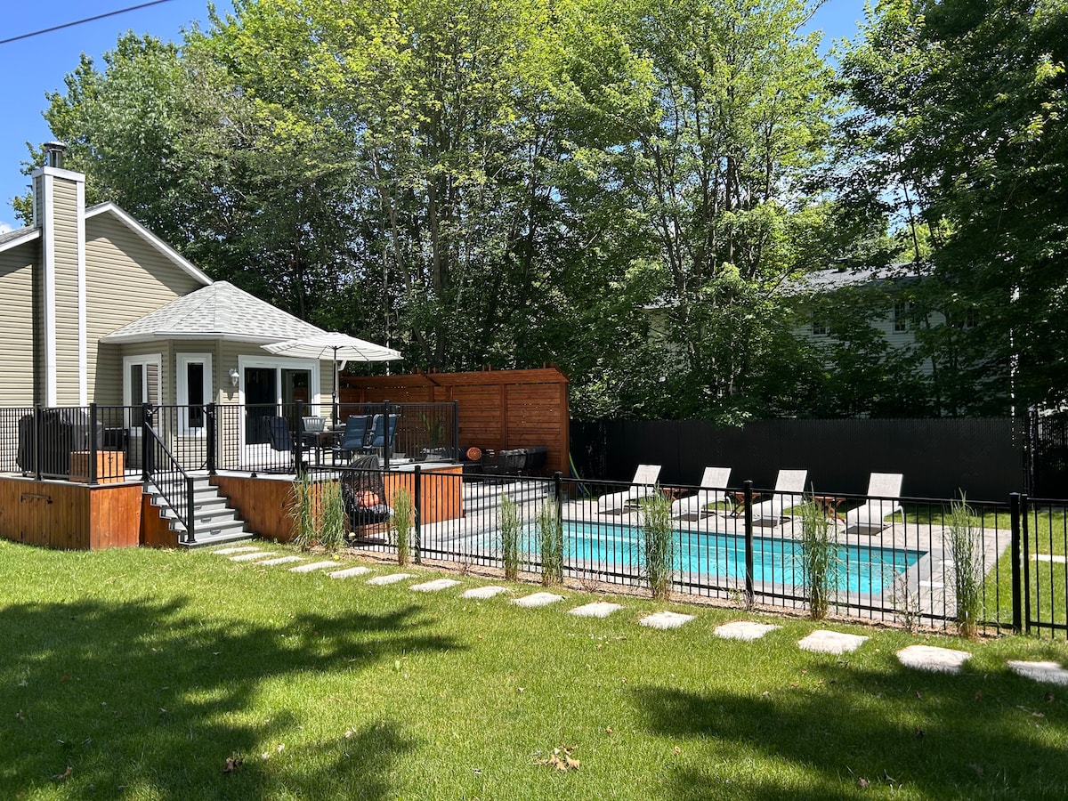 IDEAL PARA UMA ESTADIA NO SKI BROMONT OU no ZOOLÓGICO de Granby ou para as muitas ciclovias da cidade de Granby. Simplifique sua vida ficando nesta tranquila casa urbana estilo suíte com JACUZZI bem na rua principal de Granby, a poucos passos de todos os bons restaurantes e bares e mercearia, a 5 minutos do zoológico e a 15 minutos de Ski Bromont e seu parque aquático Bem-vindo ao desconto de bicicleta disponível para armazenamento Os ingressos para o Ski Zoo e o toboágua não estão incluídos