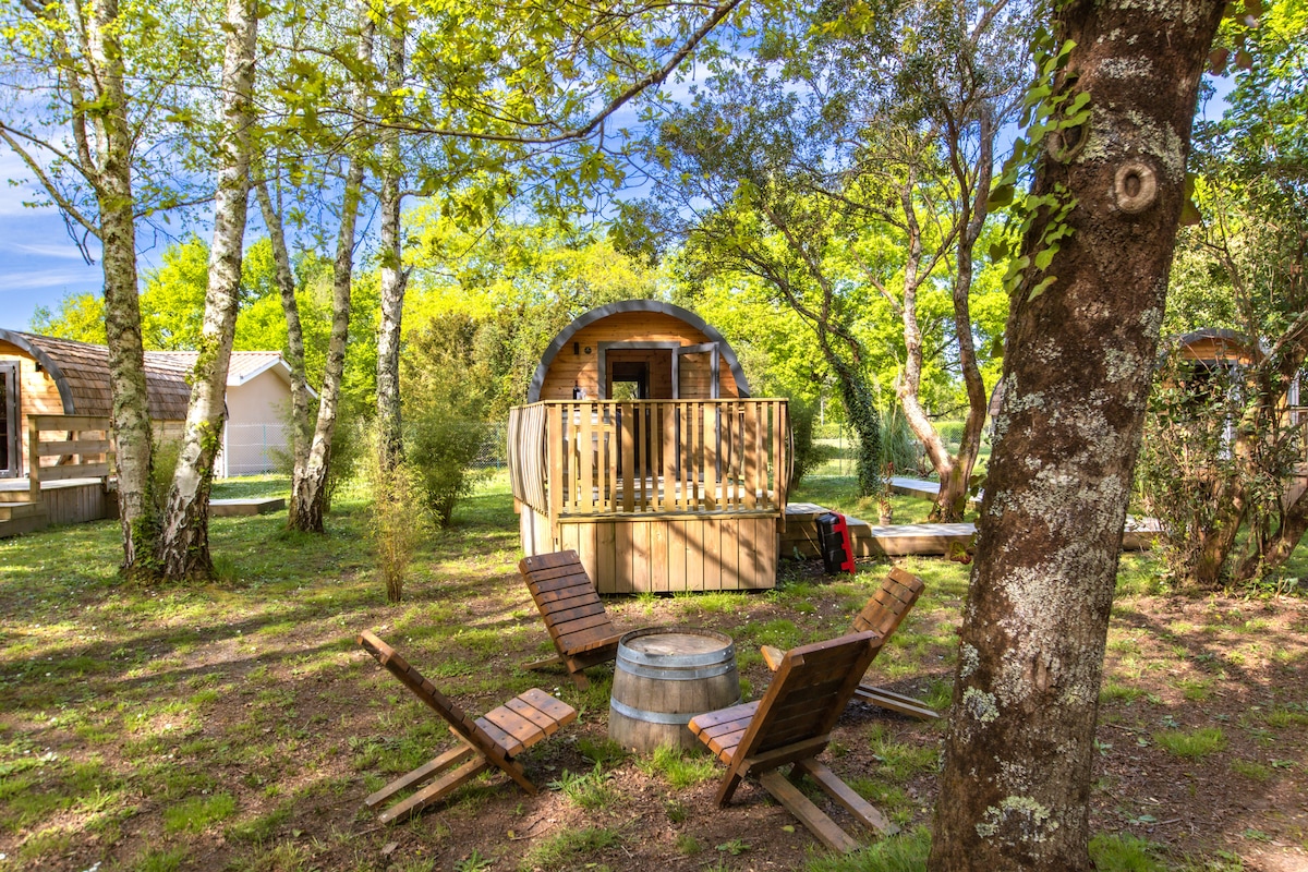 Ofereça uma acomodação sofisticada incomum, esteja em um ambiente tranquilo no coração da natureza com todos os confortos de um belo quarto de hotel. O alojamento fica em um grande terreno arborizado de mais de 2 hectares. A estrutura tem 3 m de altura, acessível por uma escada, é de 30 m2 de interior e 25 m2 de terraço parcialmente protegido. Há uma banheira de hidromassagem no terraço. Coast & Lodge está localizado em Talais, na costa oeste, em Gironde, entre o oceano e o estuário, perto de soulac sur mer