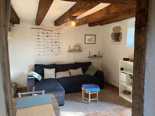 Esta antiga oficina, recentemente reformada, tornou-se uma linda casinha acolhedora. Localizada a poucos passos do vilarejo, mas em um beco sem saída, tranquilo, tem uma vista magnífica sobre o vale. Reformada em estilo industrial para preservar sua origem, oferece uma cozinha totalmente equipada, um banheiro com chuveiro, uma sala de estar e um quarto aconchegante no andar de cima. Um pequeno terraço permitirá que você aproveite a vista. Estacionamento gratuito em frente à casa. Um verdadeiro refúgio de paz!