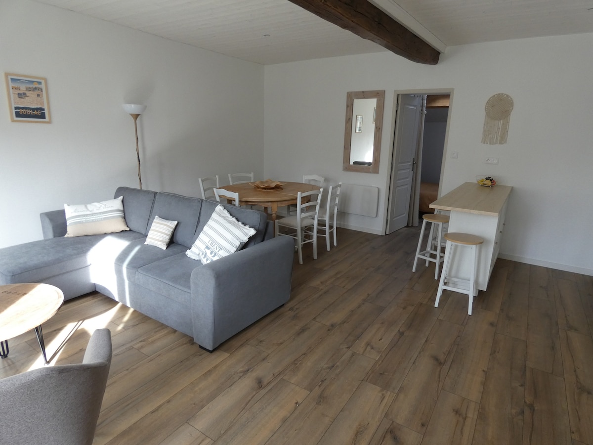 Acomodação iluminada perto de todas as comodidades a cerca de 5 min (centro da cidade, centros comerciais, estação de trem, escola de enfermagem, etc.) e a 20 min das praias de carro. Dorme 4, consiste em um quarto com uma cama de 160, um segundo quarto com duas camas de 90, um sofá-cama na sala de estar, roupa de cama fornecida (edredom, lençóis, toalhas), opcional e a pedido cama guarda-chuva (10 euros). Proibido fumar e proibido animais. Estacionamento em terrenos fechados.