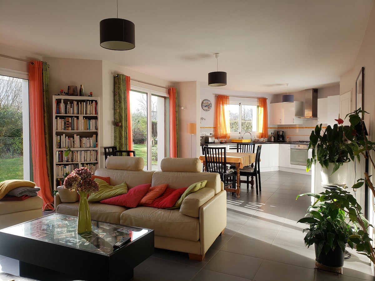 Aluguel de casa de 50M2 ,adequado para sozinho ou em família. Localizado em Questembert,para descobrir o litoral bretão ou outras descobertas , a mais bela vila da França ,Rochefort en terre , viagem de negócios, a 20 minutos das praias e a 25 minutos de Vannes. Aluguel semanal e pernoite . Também tem um terraço privado fechado. Casa localizada perto de uma fazenda. São permitidos animais de estimação pequenos.(terraço fechado e caminhada ao ar livre sob supervisão.)