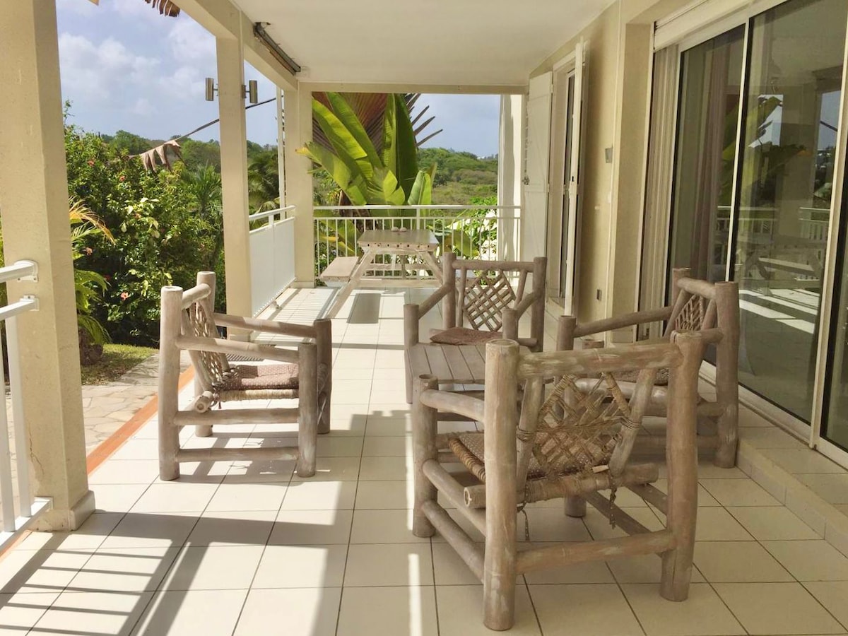 F2 in the bottom of villa independent sea view equipped with wi-fi It consists of: - 1 living room with a click clac (futon) - 1 fully equipped kitchen - 1 bedroom air-conditioned bed 140 * 190 + wardrobe - 1 bathroom, And washing machine - 1 independent terrace of 25m2 or sons hammock to assist you - 1 botanical garden - secure parking - 5 minutes from the pier for the saints - city center and trade 3 minutes - meal possible by its chef at home 25 € per person
