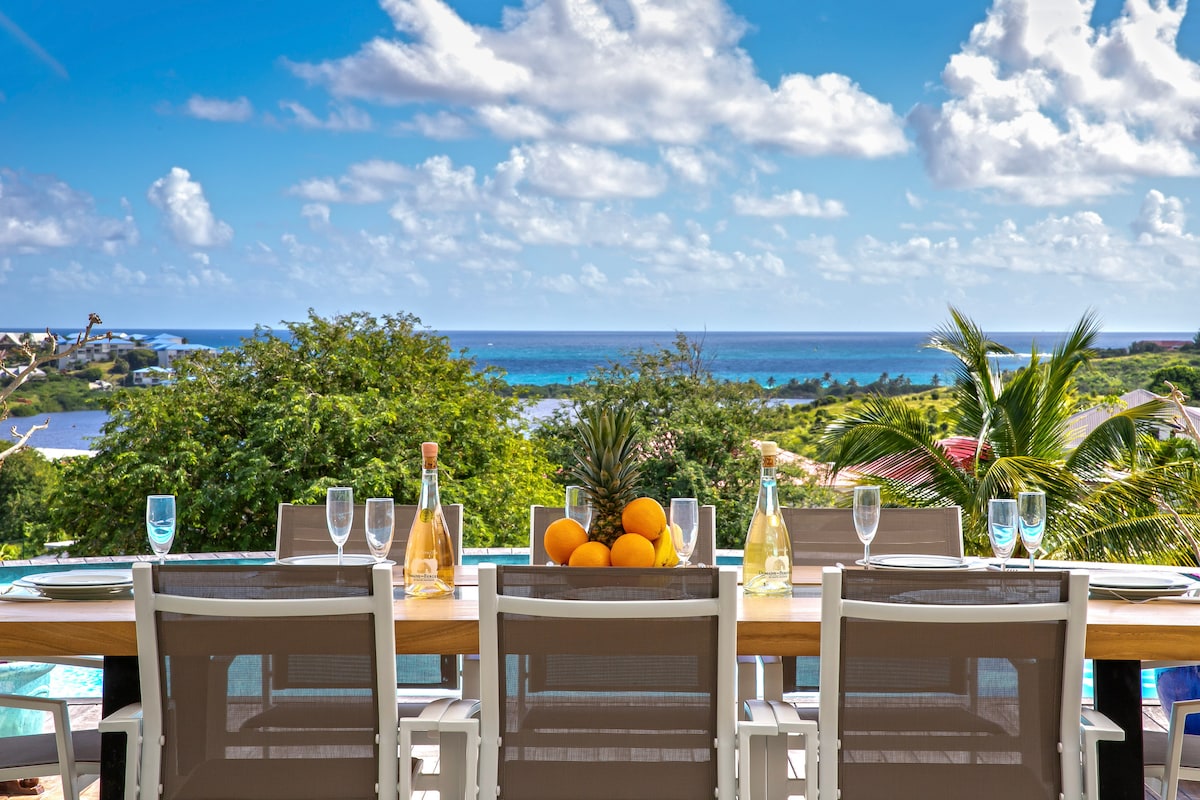 Vila com vista para o mar, 5 minutos da praia de Grand Case, privacidade