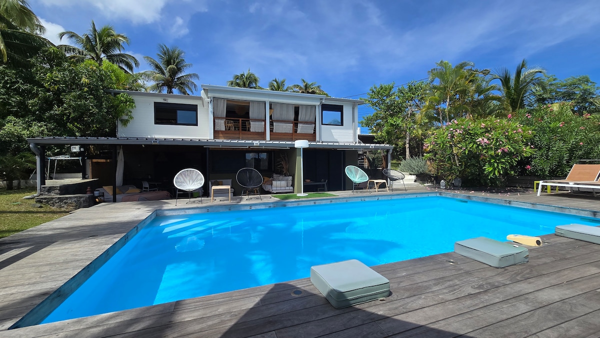 Idealmente localizada para caminhadas e praia à tarde, esta pequena residência da arquitetura crioula é composta por 4 bangalôs 4p e 2 bangalôs 2p. Todo feito de madeira com ventilação natural, seu bangalô é rebaixado em um jardim tropical com vista para a piscina, o mar e a montanha. Está equipado com uma cozinha acoplada, terraço, chuveiro e quarto. A 400 m da lagoa e 2 km do centro da cidade, recarregue suas baterias, aproveite a vida, com facilidade... Les Pecheurs du Lagon