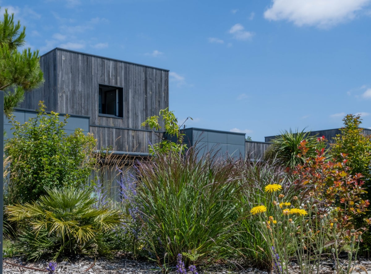 Nova vila de 170 m² projetada por arquitetos, classificada como acomodação turística mobiliada de 5 estrelas, perto da praia, lojas e floresta. 4 quartos com ar-condicionado e 4 banheiros privativos. A sala de estar bem iluminada se abre para o terraço com grandes janelas de vidro, para uma vida real de dentro para fora. Terraço de madeira virado para sudoeste, piscina aquecida e segura. Ambiente tranquilo entre a natureza e o oceano. Serviço de concierge incluído para uma estadia confortável.
