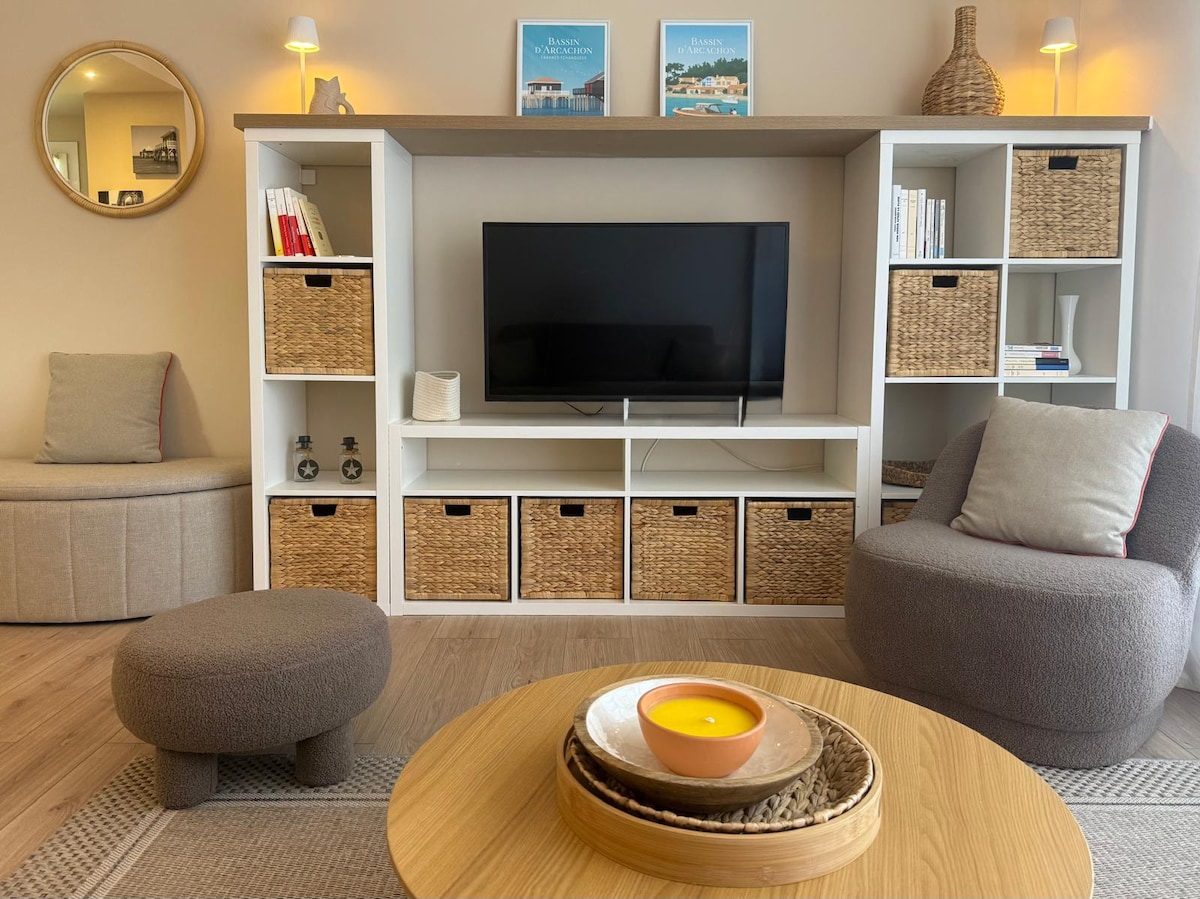 Situado sob carvalhos e em um local tranquilo, convidamos você a descobrir nosso charmoso estúdio novo de 40m2, idealmente localizado entre Arcachon e Cap Ferret. Este estúdio, espaçoso e confortável, está equipado com uma cozinha moderna, ar condicionado reversível e um espaço de trabalho equipado com uma conexão de fibra. Uma vaga de estacionamento está à sua disposição com a possibilidade de recarregar seu veículo elétrico.