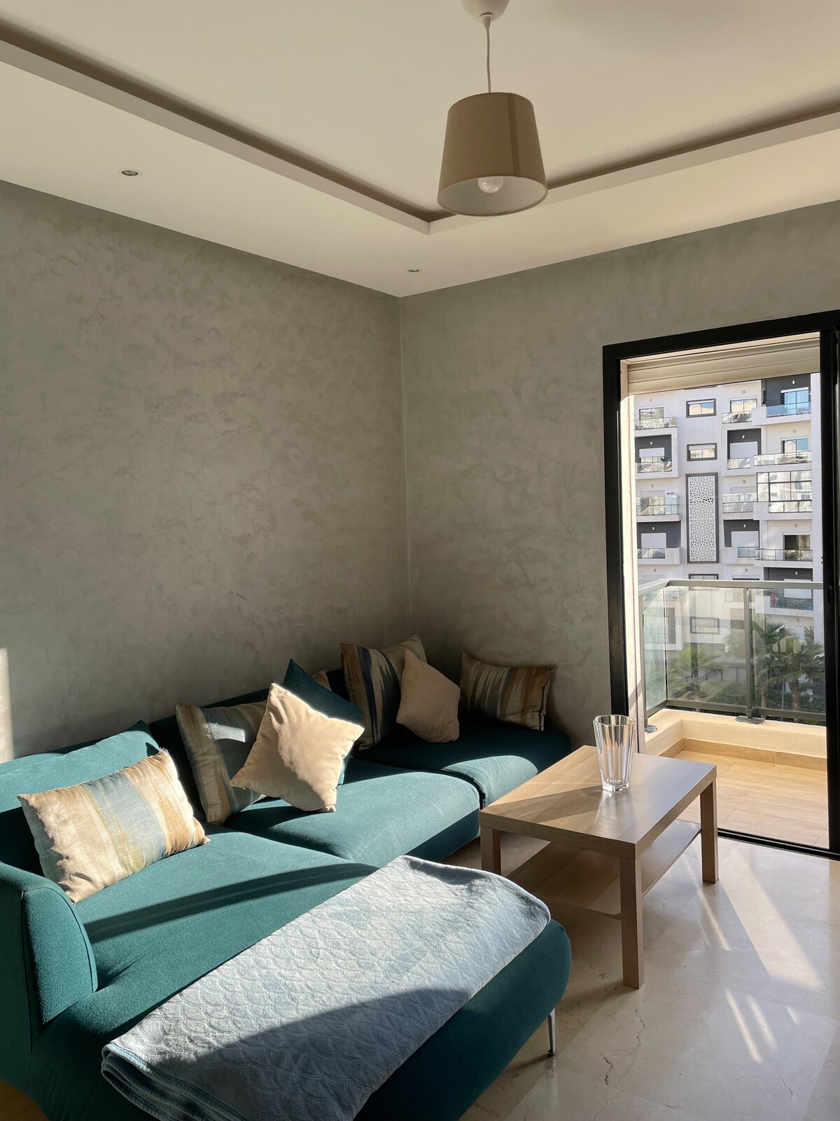 Apartamento moderno, espaçoso e luminoso em condomínio seguro. Localizado no 1º andar com acesso à garagem subterrânea, recentemente mobiliado, perto de várias comodidades que você precisa. Perto de Technopolis e a 10 minutos do Aeroporto de Rabat Sale, o apartamento dispõe de todas as equipamentos de que você precisa O apartamento é composto por 2 quartos, uma bela sala de estar, banheiro completo, toalete, uma cozinha bem equipada, varanda. O edifício dispõe de elevador e estacionamento subterrâneo