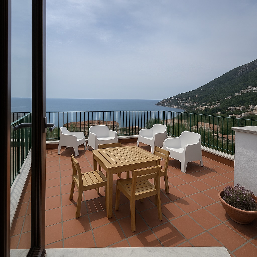 Vista de mar plana situada no famoso "Caminho dos Deuses", local ideal para esportivos, românticos e amantes de caminhadas, a 5 km do fascinante Positano. O apartamento tem todas as comodidades: terraço privado com cenário único, cozinha, pequeno-almoço incluído e imposto municipal. Está excluído o transporte de bagagens, mas há possibilidade de reservar com custo extra (5 euros por saco) um carregador.
