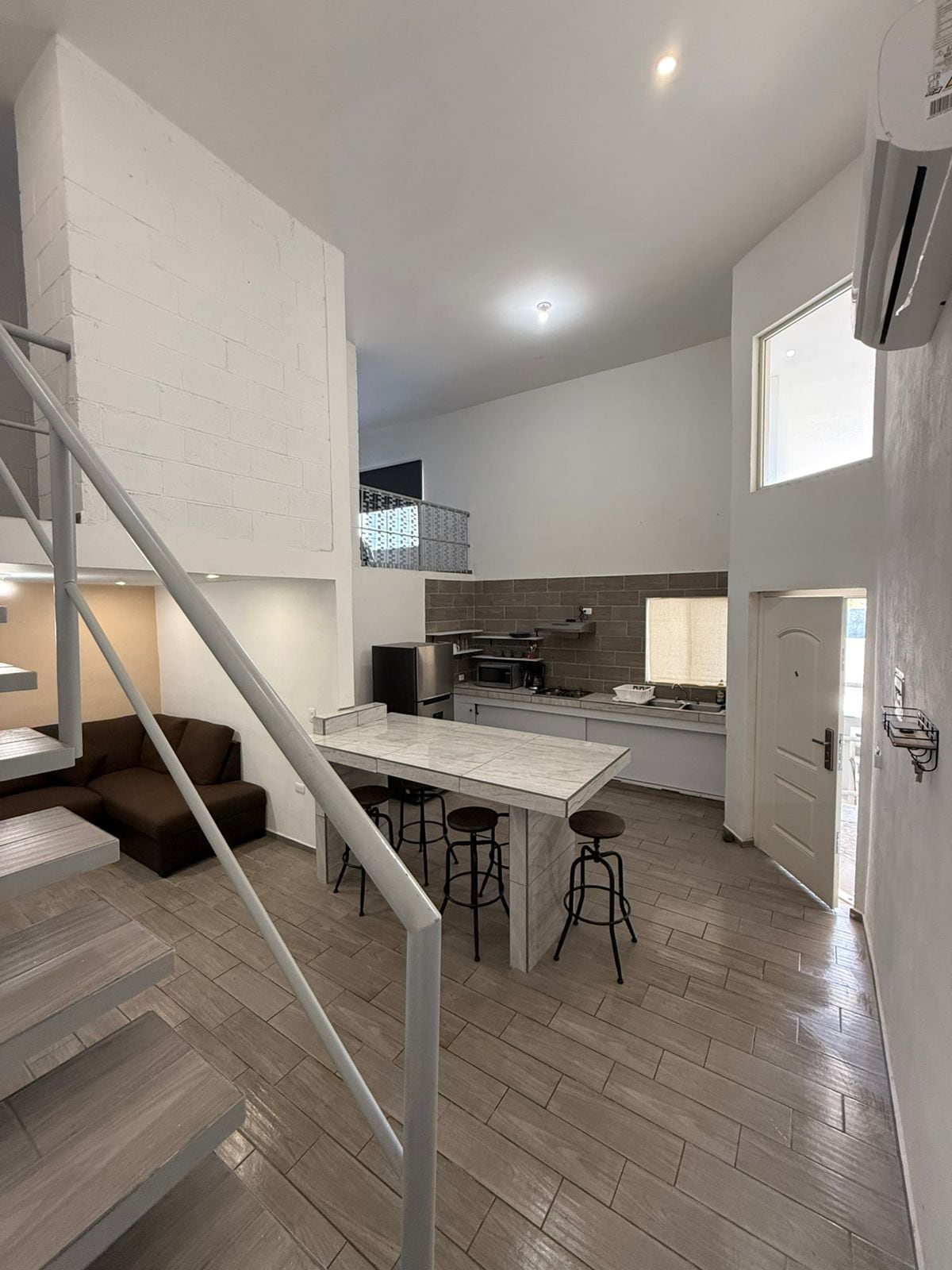 Bem-vindo ao seu retiro perfeito no coração de North Saltillo. Nosso confortável loft fica a apenas 5 minutos de hospitais, restaurantes e bares e a apenas 15 minutos do parque industrial mais importante de Ramos Arizpe. Dispõe de acesso Wi-Fi gratuito, ar condicionado, cozinha equipada e banheiro completo. O complexo tem acesso controlado, vigilância, estacionamento, área social e área de academia. Reserve agora e desfrute de uma experiência inesquecível em um espaço pensado para seu conforto!