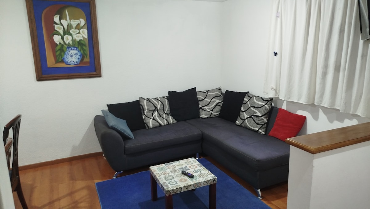 Aproveite o final da sua visita a Cholula Pueblo Mágico em uma estadia confortável e tranquila. Você encontrará um apartamento no térreo cercado por plantas. 2 quartos com cama de casal, cozinha, banheiro completo, sala de estar e jardim privado. Está localizado a 1 km do Centro Arqueológico de Cholula, a 0,5 km da UDLAP e a 3 minutos do anel viário. Também é adequado para usá-lo sob a modalidade de "trabalhar em casa" estando confortável e conectado.