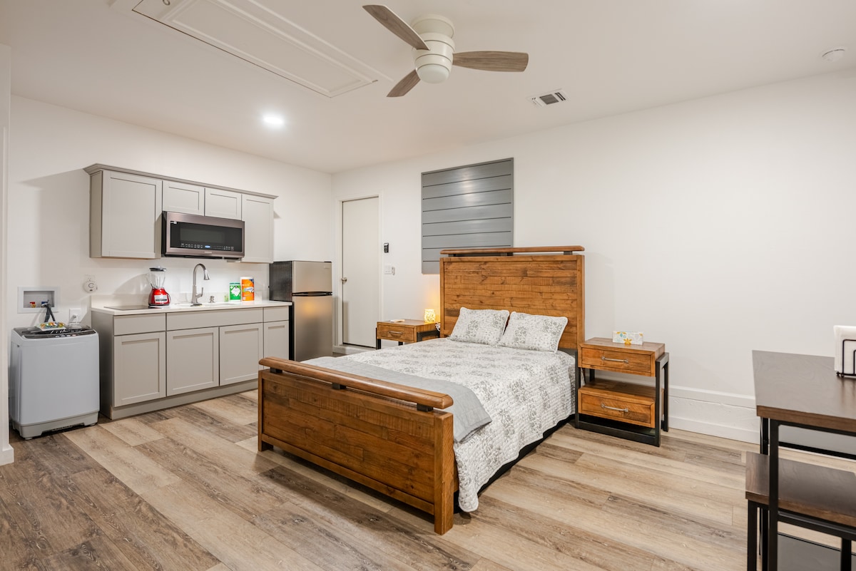 Estúdio minimalista A MENOS DE 1 MILHA DO ALAMO! Localizado em #HistoricDiggyHill, no lado leste próximo de San Antonio, nos arredores do centro da cidade. Pegue um Uber ou uma scooter para a cidade por menos de US$ 10. Esta suíte de hóspedes tem uma cozinha acoplada com todos os itens essenciais de cozinha fornecidos, bem como uma entrada completamente privativa anexada à parte de trás da nossa casa para sempre. Por favor, note que o bairro é totalmente seguro, mas está em ascensão.