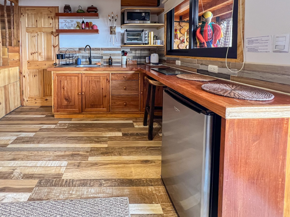 Chalé aconchegante e compacto (estilo microchalé) com lareira e jacuzzi, perfeito para relaxar. Ideal para casais em busca de natureza, paz e silêncio, um ambiente de floresta, conforto e tranquilidade. A apenas 20 minutos de Antígua e a 5 minutos de restaurantes locais, com acesso a trilhas para caminhadas e ciclismo. Perfeita para uma viagem relaxante, para viajar sozinho ou para trabalhar remotamente em um ambiente tranquilo.
