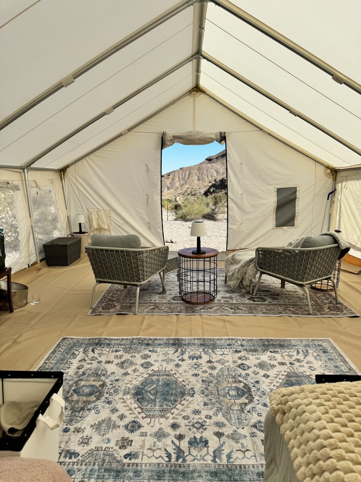 Boas-vindas à sua tenda de safári de luxo privativa, um refúgio de glamping boutique a poucos minutos da Strip, mas a mundos de distância, no tranquilo Deserto de Mojave. Projetada para oferecer conforto e estilo, esta tenda espaçosa conta com 2 camas de tamanho normal, decoração cuidadosa e um ambiente acolhedor e convidativo que combina aventura e relaxamento. Acorde com as manhãs tranquilas do deserto, passe o dia explorando trilhas off-road ou o rio Colorado nas proximidades e encerre a noite sob um céu repleto de estrelas. Não é apenas um lugar para ficar, é uma experiência