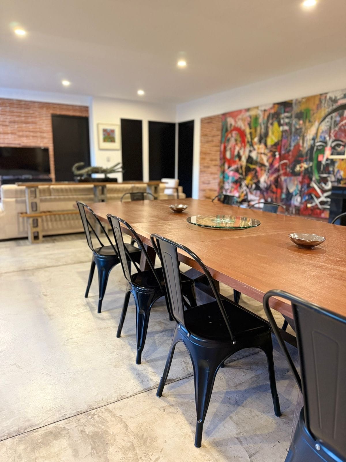 É um loft bonito e tranquilo com decoração alegre e mexicana, dentro de um espaçoso jardim com redes, árvores frutíferas e florais, além de seu terraço muito amplo e piscina com revestimento de chukum cuja água é aquecida por meio de aquecedores solares.