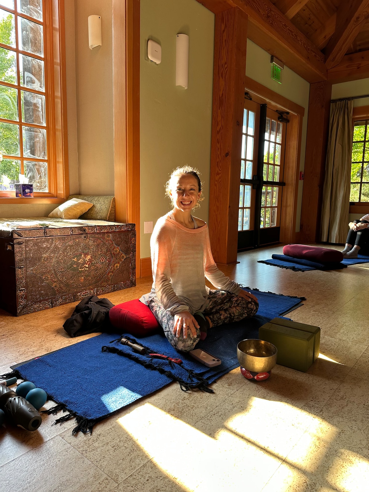 Sou instrutora de ioga certificada com 200 horas de experiência adicional em ioga restauradora