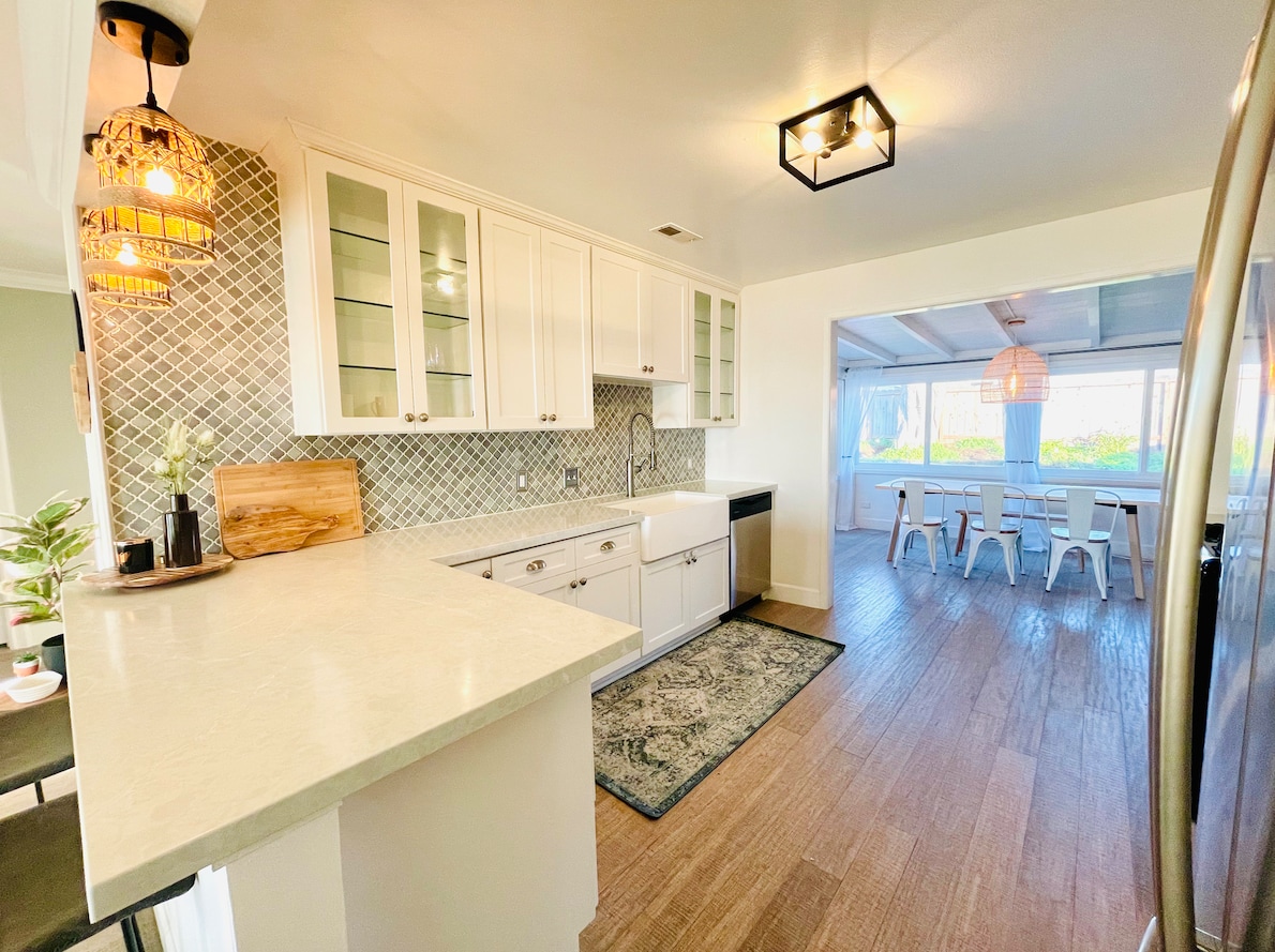 Casa à beira-mar remodelada com vistas deslumbrantes do Pacífico e observação de baleias! Ultra limpo e confortável. O refúgio boho aconchegante perfeito para casais, famílias e viajantes. 3 camas, 1 banheiro. • Self check-in🔑 • Diretamente em frente ao oceano com acesso à praia a poucos passos de distância 🌊 • Restaurantes maravilhosos a apenas dois quarteirões de distância 🥗 • Higienizado por profissionais✨ • Renovado com tecnologia inteligente • Lareira com espreguiçadeiras Adirondack na frente, lareira com cadeiras no deck de trás • Pebolim/Piscina/Pac-Man🕹️ • Estacionamento gratuito