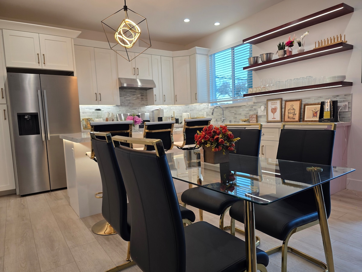Welcome to your luxury retreat in Downtown Modesto! This fully remodeled 2BR/1.5BA Midcentury Modern home offers: • 1,150 sq ft of stylish double story home with spacious living space with new kitchen and baths • Large yard with paver-lined grass, Edison lights, and fire pit • 65” Smart TV, 1200mbps WiFi, 4K security system, and smart garage • Queen bed with desk, plus two twin beds, all with premium linens • Walking distance to fine dining, nightlife, and attractions