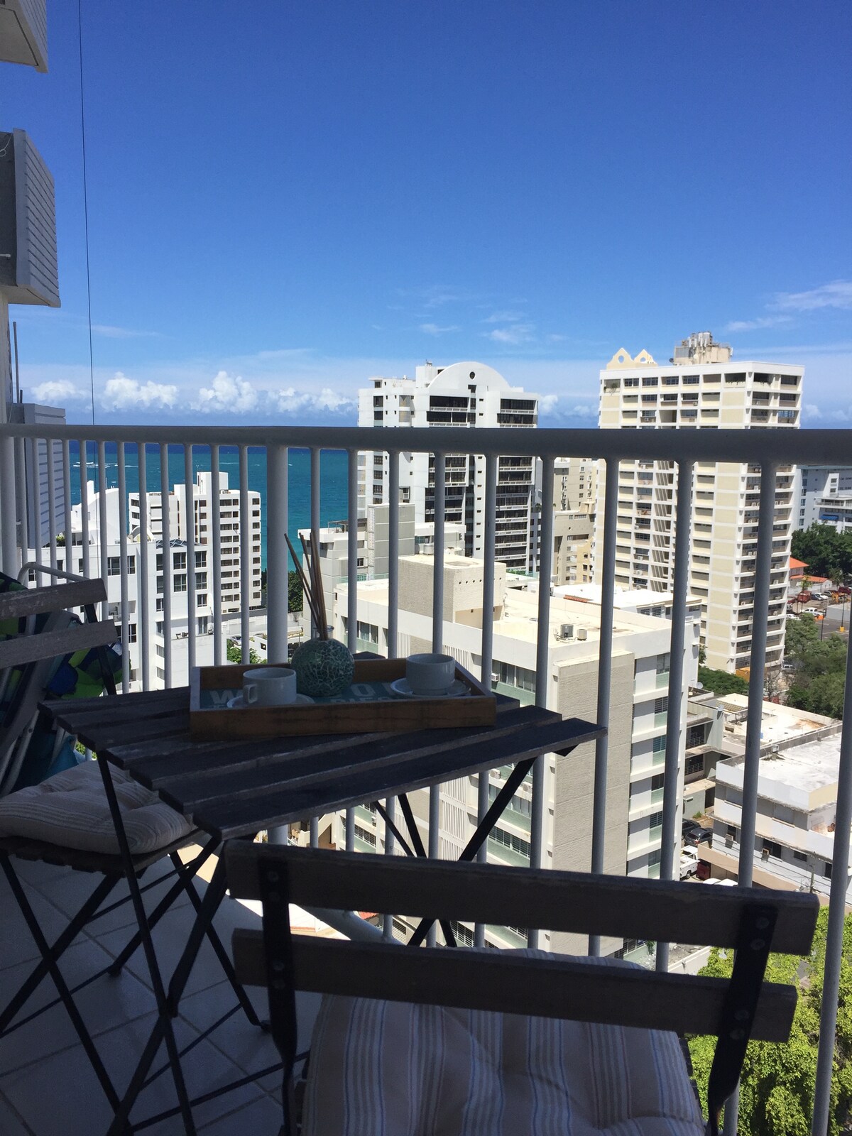 Você vai adorar ficar neste apartamento chique que foi cuidadosamente redesenhado com muita paixão e amor❤️. Tenha certeza de que levamos os procedimentos de limpeza e higienização muito a sério e nosso gerente de limpeza é exigente sobre isso. Com belas vistas do céu azul e do oceano durante o dia e uma vista magnífica da cidade durante a noite, a apenas 10 minutos do aeroporto SJU, será o seu local perfeito para desfrutar da ilha no seu melhor. Caminhe e aproveite a praia, cassinos, restaurantes e lojas ao redor de Condado.