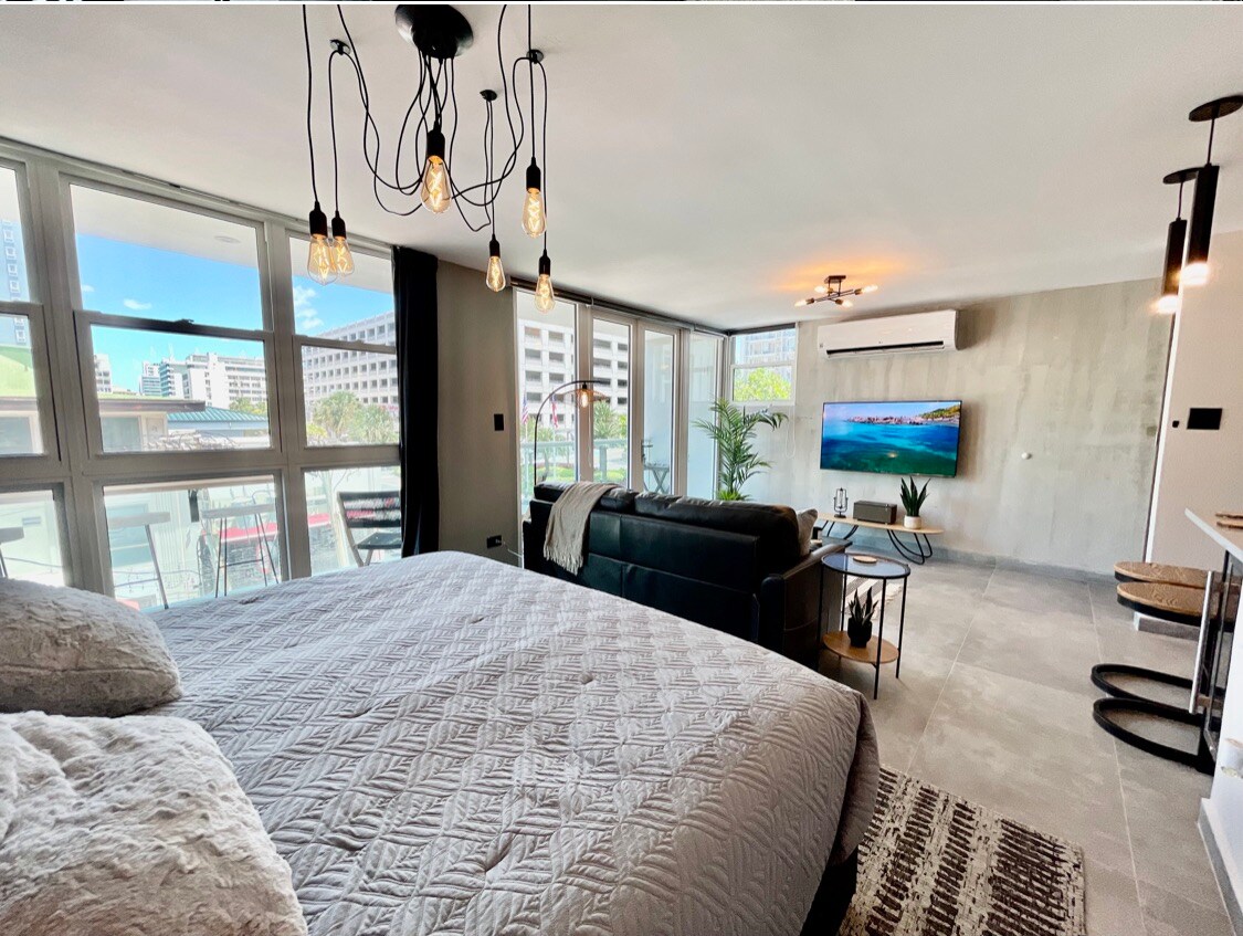 Sua busca acabou!!!! Você encontrou o lugar perfeito para sua estadia neste Loft de luxo de 989 pés quadrados (o maior do condomínio), localizado centralmente, em SAN JUAN, PR. Delicie-se com um loft requintado e decorado com bom gosto, com muitas peças de arte únicas. Além disso, não se preocupe com quedas de energia ou água que ocorram na ilha, este condomínio é backup com geradores de energia e cisternas, portanto, sua visita não deve ser interrompida. Tudo o que você precisa está aqui ! Te vejo em breve🙏🏻