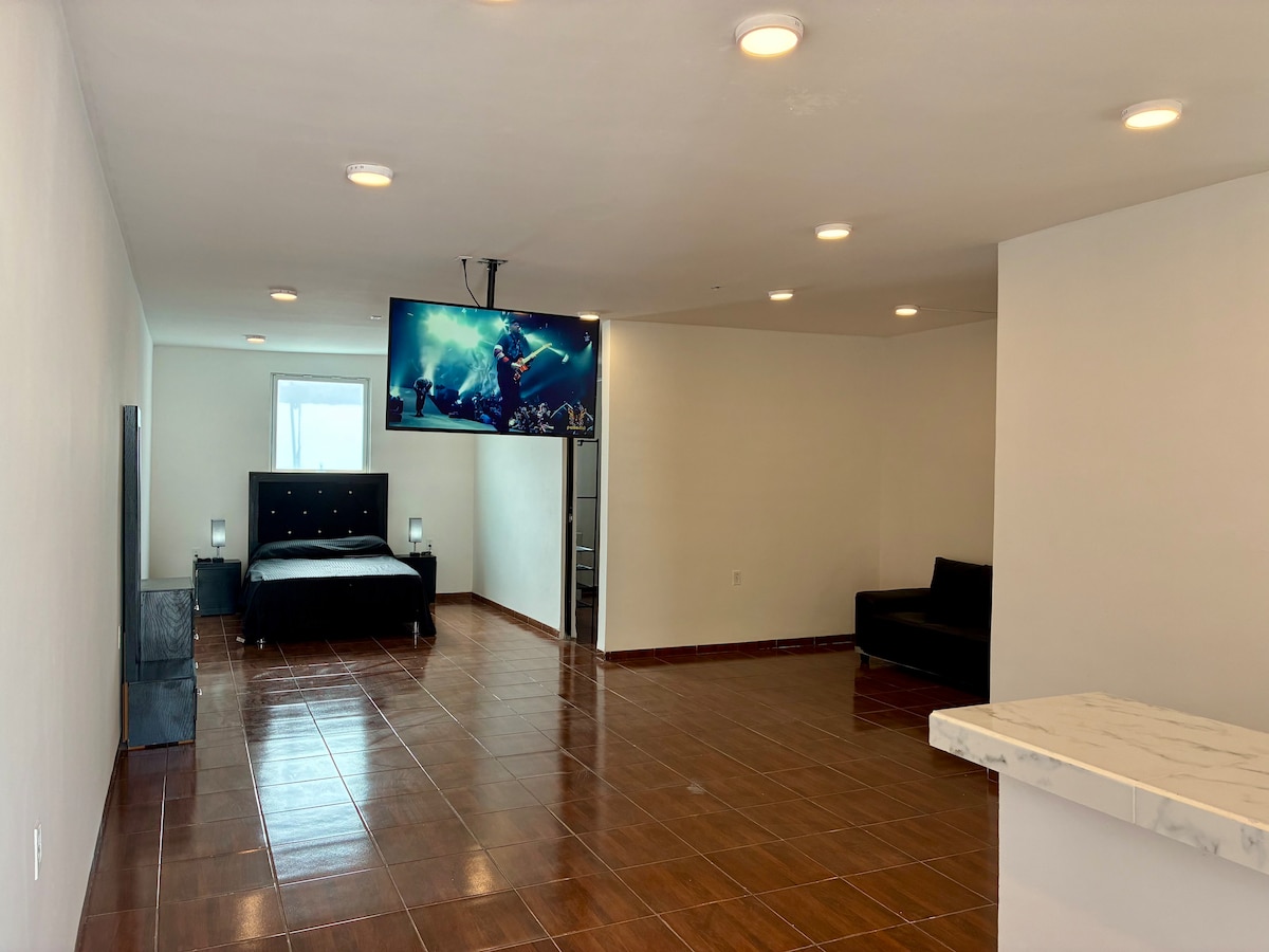UBICADA EN PRIMER PISO, TIENE UNA RECAMARA CON CAMA MATRIMONIAL, CLOSET, TV, CABLE, INTERNET. COCINA EQUIPADA CON PARRILLA DE INDUCCION , FREGADERO, REFRI, MICROONDAS, BARRA DESAYUNADOR. BAÑO COMPLETO INTEGRADO A LA RECAMARA BIEN ILUMINADO Y VENTILADO. SE LOCALIZA AL SUR PONIENTE DE LA CIUDAD EN UNA COLONIA MUY TRANQUILA A 300M DE SALVADOR NAVA, 5 MIN A PERIFERICO Y AL PARQUE TANGAMANGA, 10-15 MINUTOS AL CENTRO DE LA CIUDAD. NO TIENE ESTACIONAMIENTO. NO MASCOTAS