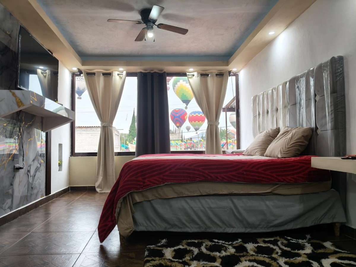Alojamiento tranquilo, céntrico y seguro En el centro de San Martín de las Pirámides Su habitación puede incluir vuelo en globo con costo extra por persona y desayuno incluido. Ubicados muy cerca de las pirámides de Teotihuacán así como de sus principales Puertas de entrada. Ven en y disfruta de un espacio con dos camas matrimoniales, wifi, tv, refrigerador, baño privado. Estancia con horarios flexible.