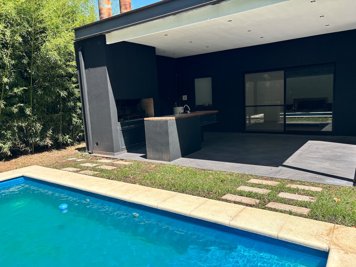 Relaxe nesta acomodação única e tranquila. O ambiente de árvores, natureza, a piscina com seu jardim, quincho e churrasqueira; é ideal para se desconectar da rotina. O conforto da casa torna este lugar uma estadia perfeita para desfrutar com todas as comodidades. A propriedade fica dentro de um bairro fechado, então há segurança e você pode desfrutar de todo o clube de campo.