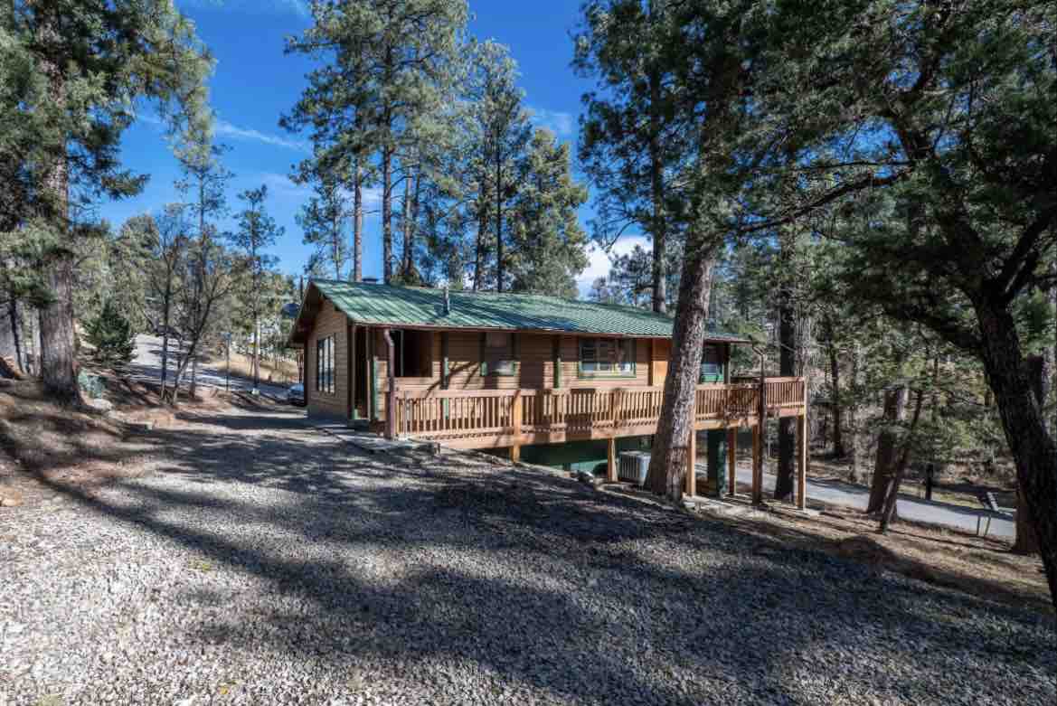 Esta cabana aconchegante está situada calmamente entre os pinheiros altos e é perfeita para acomodar até 4 hóspedes. Com um quarto, um banheiro, sala de estar, área de jantar, cozinha completa, escrivaninha, nova banheira de hidromassagem e deck; é ideal para aqueles que querem relaxar e desfrutar o que Ruidoso tem a oferecer. Está situado num bairro tranquilo que fica a uma curta caminhada de 10 minutos descendo a colina até Midtown, o centro da vila para compras e restaurantes. A cabana fica a 37 minutos de carro do Ski Apache, a 10 minutos de carro dos cassinos.