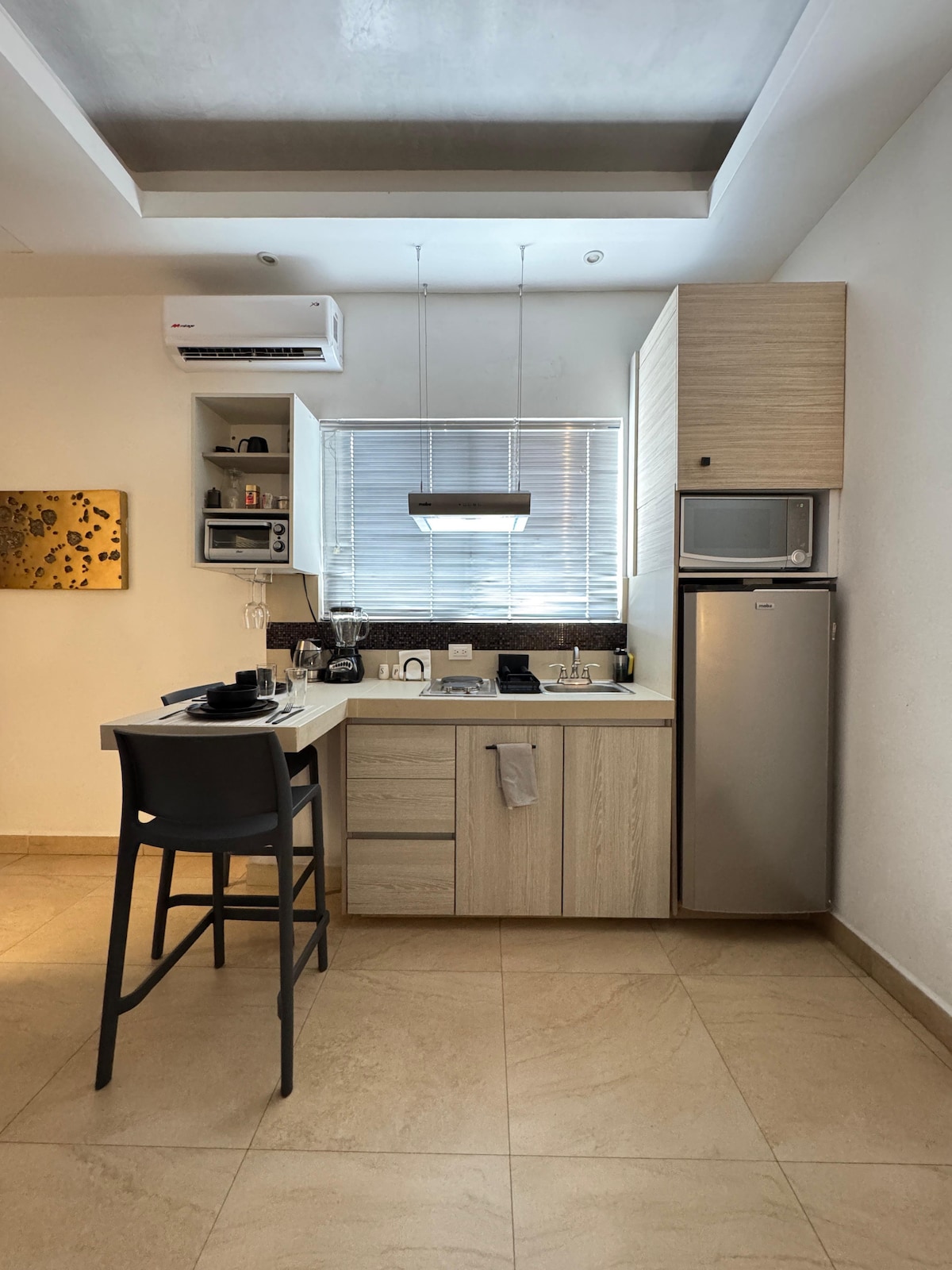 Sinta-se em casa a partir do momento em que chega a este apartamento confortável e recém-renovado, ideal para uma pessoa. Um espaço prático e bem pensado para uma estadia agradável e sem complicações. O lugar é mantido impecavelmente limpo, funcional e tranquilo. Graças à sua excelente localização, você estará perto do Consulado Americano, UDEM, bem como lojas e restaurantes. Um espaço confortável, boa localização e pronto para recebê-lo.