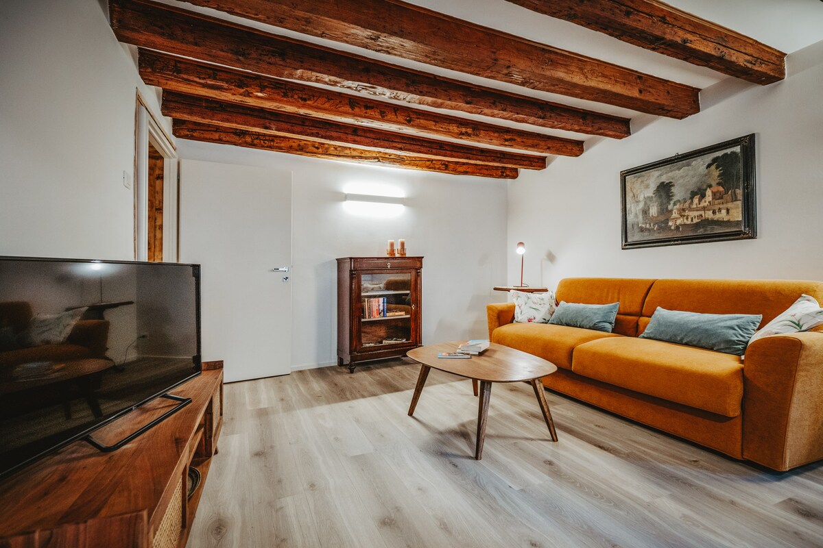 Apartamento recentemente renovado com teto alto com vigas expostas, entrada independente a 5 minutos a pé da estação ferroviária. Descubra a autêntica Veneza hospedando-se neste apartamento no bairro de Santa Croce. O apartamento, localizado em um edifício típico veneziano, combina confortos modernos com o charme histórico dos interiores originais trazidos à luz durante a renovação. As janelas brilhantes tornam o ambiente acolhedor e confortável, garantindo paz e privacidade.