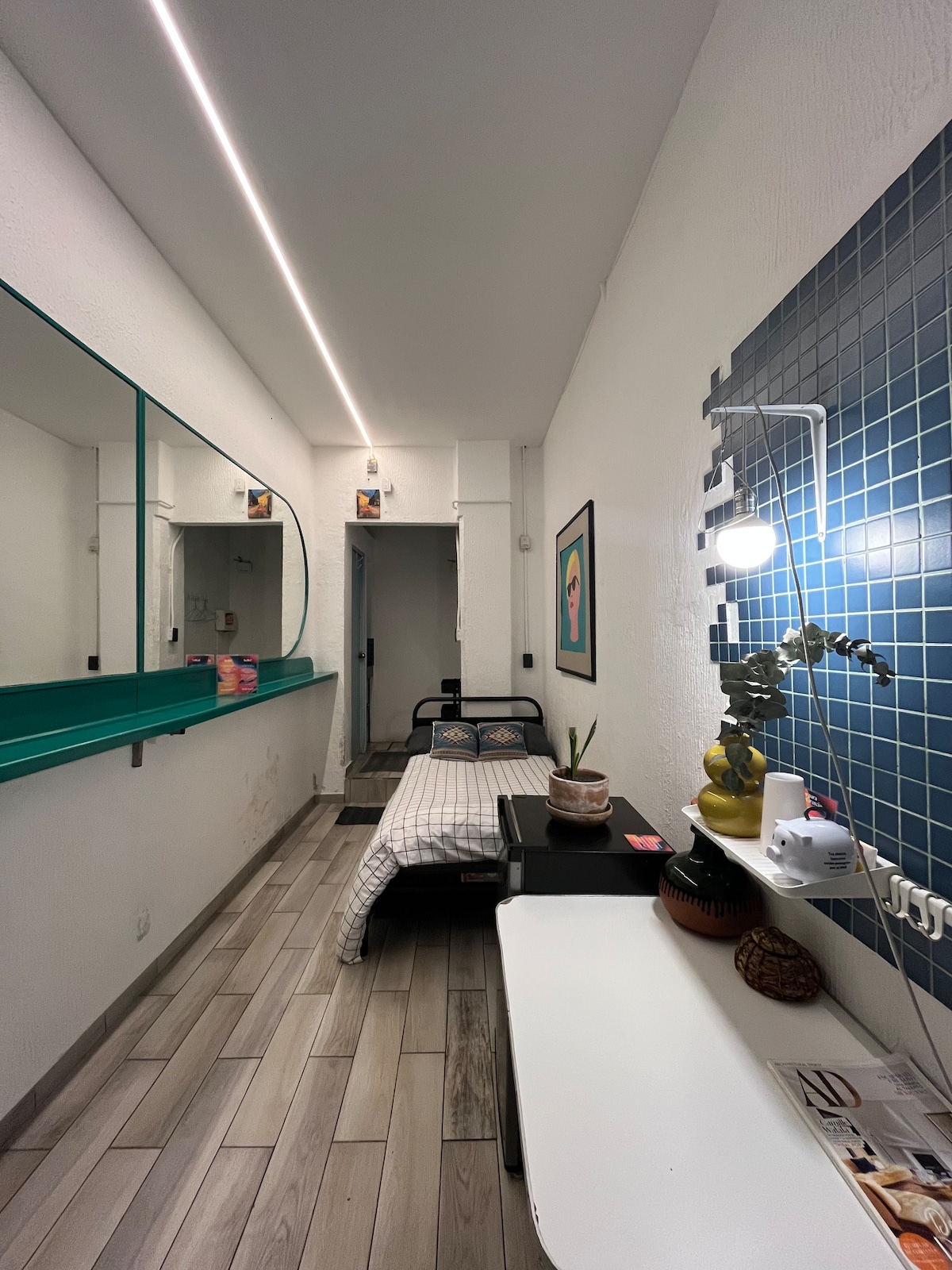 Este é um apartamento de 57 metros quadrados com tetos de tijolos muito altos, uma grande sala de estar e área de jantar com muita luz. Encontre móveis autênticos e elegantes de meados do século e várias peças de arte. O apartamento tem um quarto privativo com cama queen size, armário e banheiro e uma cozinha separada com suprimentos. Ele também tem dois pequenos pátios internos para luz e ventilação. Muitos detalhes originais da arquitetura de 1940, como pisos, paredes de tijolos, teto e molduras de janelas foram conservados na restauração. O projeto foi recentemente apresentado na Architectural Digest México e ganhou vários prêmios importantes de arquitetura: Architecture Masterprize e NoldiSchreck. Os hóspedes podem usar todo o apartamento. Você também pode ficar no pátio interno do condomínio e no saguão do primeiro andar. Há também uma lavanderia com lavadora e secadora que você pode usar ao lado da garagem. Santa María La Ribera é um bairro histórico do século XIX. Passeie pelo Parque Alameda em frente e visite o Museo de Geología nas proximidades. Aqui, observe fósseis de mamutes e dinossauros, além de pinturas do famoso mestre mexicano José María Velasco. Você encontrará muitas opções de transportes públicos, incluindo metrô, metrobus (linha direta para o aeroporto e centro histórico), trem, ônibus e sistema público de bicicletas (ecobici). Metrobus Linea 4 norte é uma conexão direta do aeroporto T1 e T2 para Buenavista e de volta. Demora cerca de 45 min. 30 pesos/pessoa, é necessário um Metrocard recarregável. Forma segura, rápida e direta de ida e volta para o aeroporto.