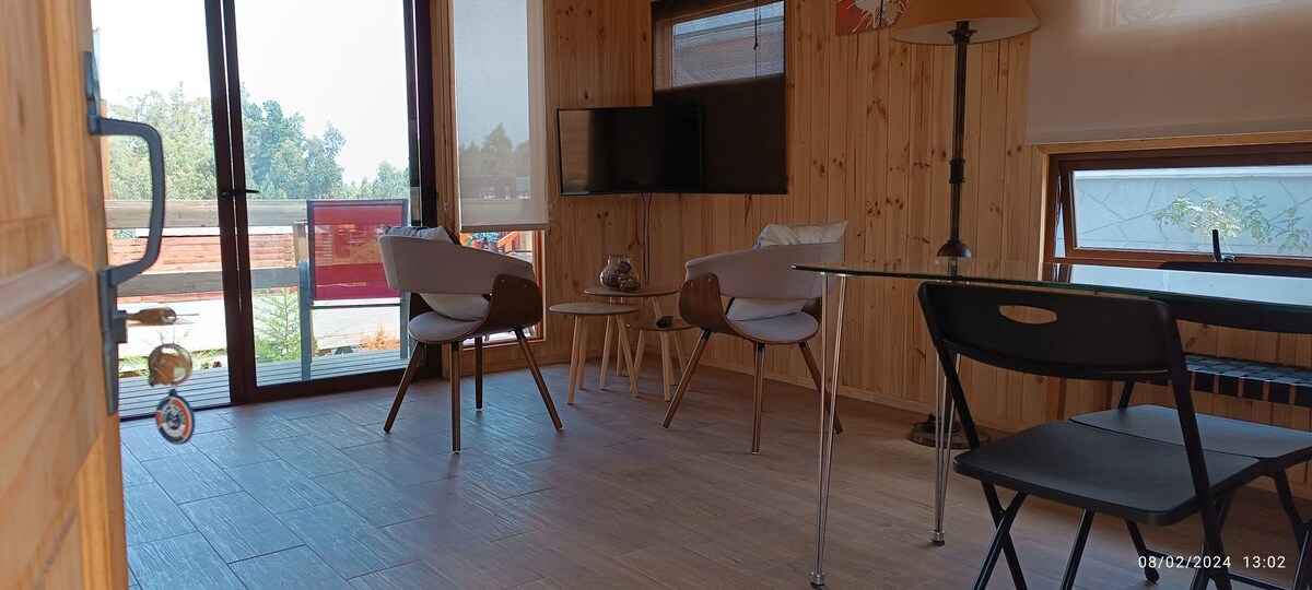 Cabaña estilo loft ubicada a pasos de las playas y negocios, cuenta con estacionamiento,juegos de playa , quitasol Yaque, esta a 5 minutos a pie de la playa principal y a 10 minutos del hermoso mirador natural punta del lacho, ademas de estar ubicada a minutos de distintos comercios y paraderos. Cuenta también con estacionamiento .