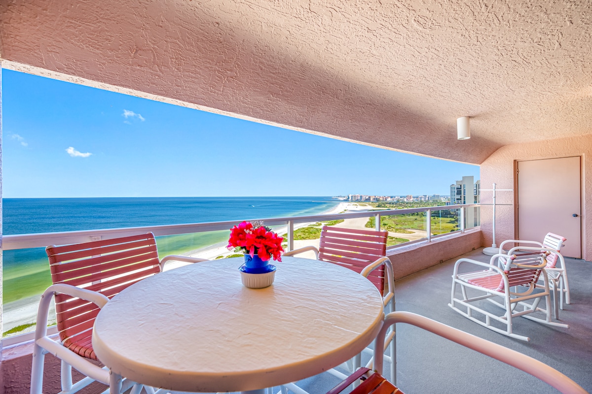 A poucos passos da praia, este condomínio de praia recentemente reformado e perfeitamente localizado é o seu refúgio de luxo. O quarto grande, a área de estar elevada e a cozinha moderna aberta, bem como a varanda generosa com vista direta para o Golfo farão com que você nunca mais queira sair. Este apartamento está mais bem equipado do que o seu aluguel de férias médio e vem com o seu espetáculo diário privado do pôr do sol. Continue lendo para saber mais...
