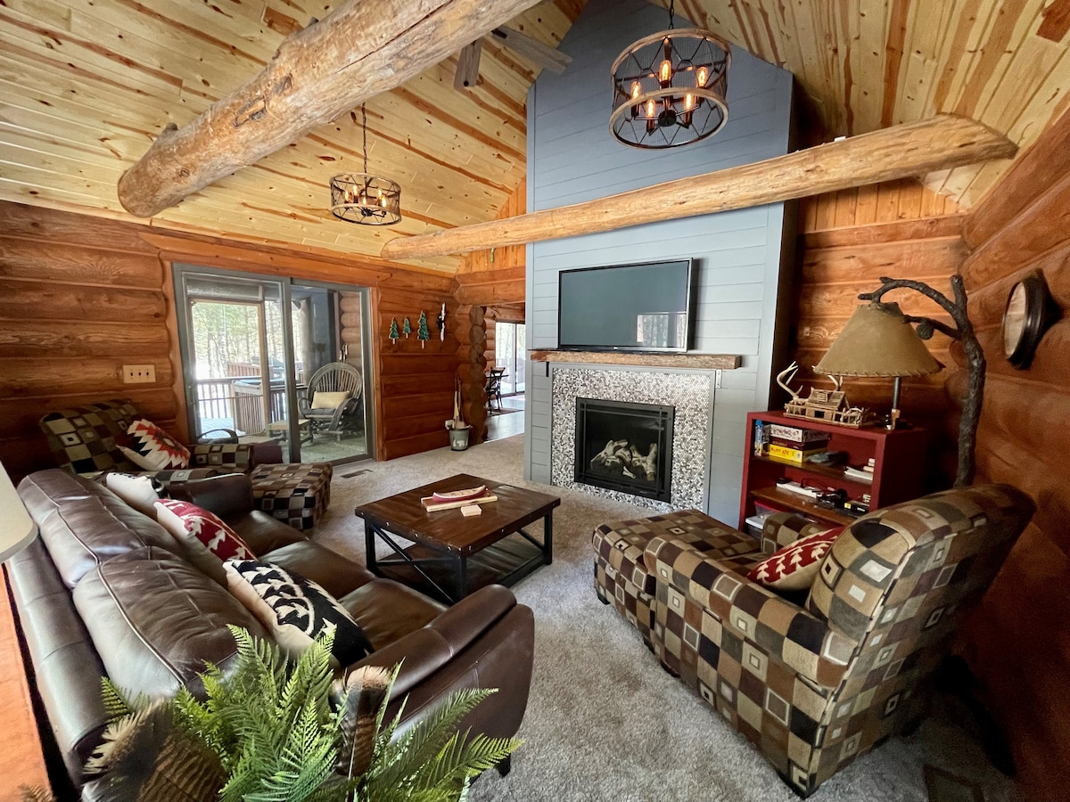 Bem-vindo à nossa cabana de madeira personalizada em 6 acres em Danbury, WI. Esta é uma cabana de 2 quartos, 1,5 banheiro com um quintal amplo e pátio deslumbrante. Possui uma lareira de pedra, fogueira, sofás e mesas de jantar. Esta cabana é privada com florestas exuberantes ao redor e lazer sem fim, como flutuar pelo rio ao sol de verão ou ter uma luta de bolas de neve enquanto os flocos caem no inverno. Não importa a estação, esta cabana é perfeita para a família e amigos se reunirem para desfrutar da companhia uns dos outros!