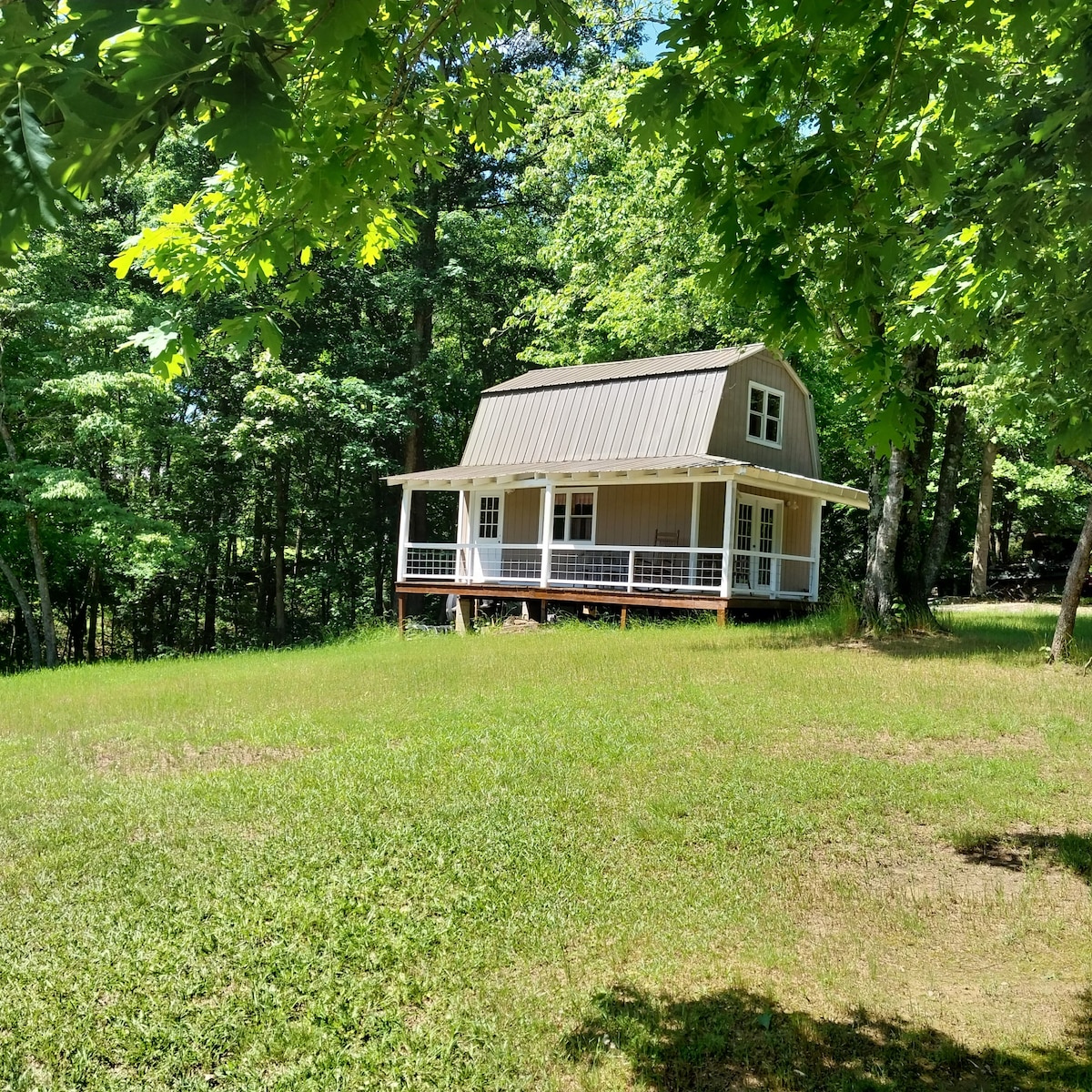Você jamais vai esquecer da sua estadia neste lugar romântico e marcante. Desfrute de 4 acres de reclusão adjacente à trilha Chief Ladiga e a uma curta distância a pé da trilha Pinhoti. O nível principal contém uma cozinha totalmente equipada, um lavabo e um sofá-cama. Suba as escadas em espiral para o quarto principal com vigas expostas e um teto de estanho rústico. Desfrute de 3 decks e mergulhe na paisagem ou relaxe na cama de balanço ou banheira de hidromassagem e ouça os sons de Little Terrapin Creek.