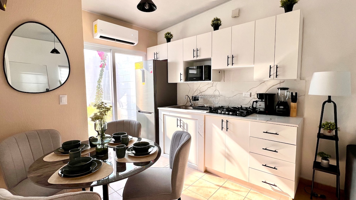 O apartamento da Maria é moderno e aconchegante, perfeito para quem busca conforto, boa localização e espaço para relaxar. Possui ar-condicionado, sala de cinema ideal para desfrutar de filmes e séries após um dia de atividades. Está localizado perto de centros comerciais, restaurantes e do coração de Santa Ana, o que facilita a locomoção pela cidade sem complicações. Ideal para casais, viajantes de lazer ou de negócios que querem um lugar tranquilo, limpo e bem equipado.