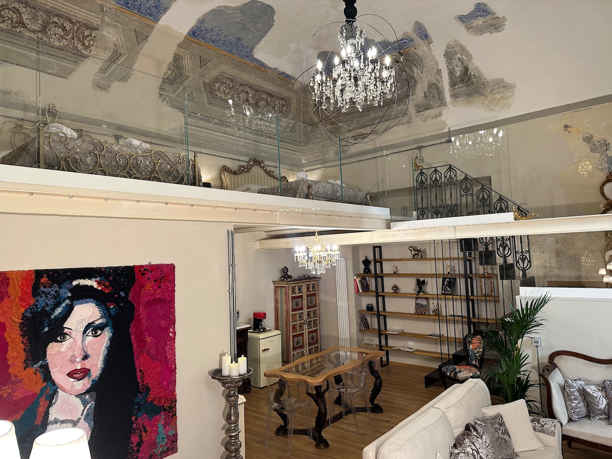 O apartamento é um elegante loft com afrescos, a apenas 5 minutos a pé do Duomo, no centro histórico de Florença. Está localizado no famoso “Palazzo Caccini”, datado de 1400, onde também viveu Arthur Schopenhauer e onde se hospedaram o patriarca de Constantinopla José II e 23 bispos ortodoxos durante o Concílio de Florença em 1439. Fica ainda na renomada Via Borgo Pinti, uma das ruas mais elegantes da cidade. A casa está situada no rés-do-chão, com entrada independente.