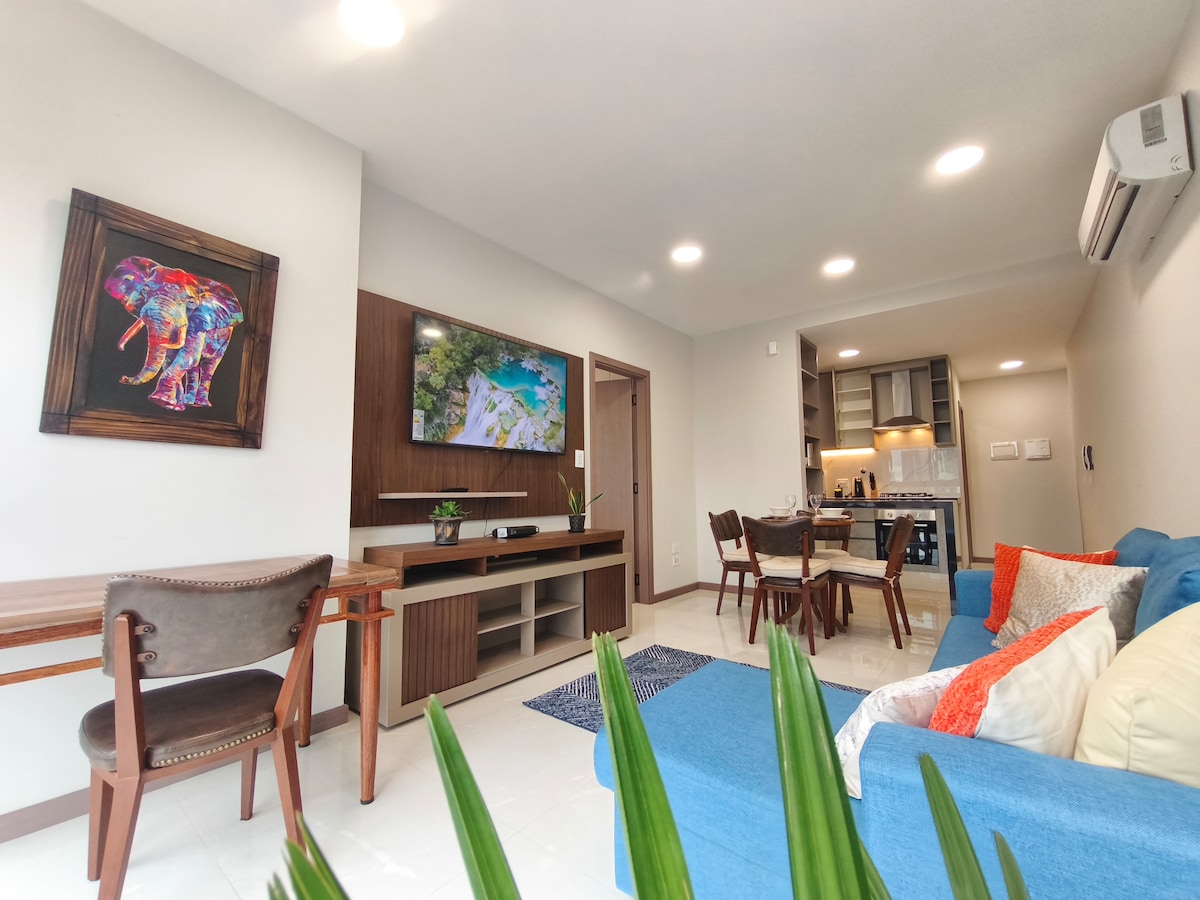 Apartamento confortável e elegante, localizado na área mais moderna de Santa Cruz (Equipetrol), totalmente equipado para uma estadia confortável e segura, perto de restaurantes, supermercados, cafés, farmácias e vários pontos de interesse. Tem cozinha, varanda privativa e acesso a piscina panorâmica, sauna seca e a vapor, sala de jogos, academia, churrasqueiras e área de coworking.