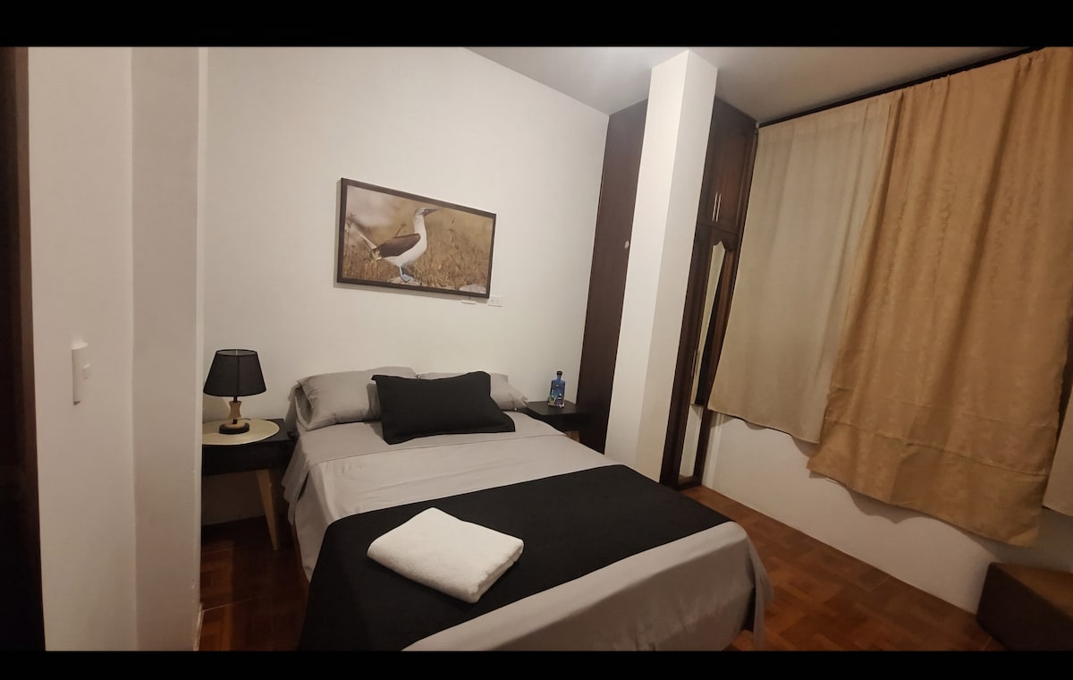 Ubicado vía Tortuga Bay, el apartamento te ofrece un espacio tranquilo y seguro para disfrutar de tu viaje en Puerto Ayora - Galápagos. A tan solo 5 min del acceso a la playa Tortuga Bay y 4 min del barrio central, cuentas con la mejor ubicación para movilizarte caminando al malecón y sitios turísticos. Capacidad máxima para 7 personas (dos camas matrimoniales, dos individuales y un sofá cama delicioso). Incluye internet Starlink!