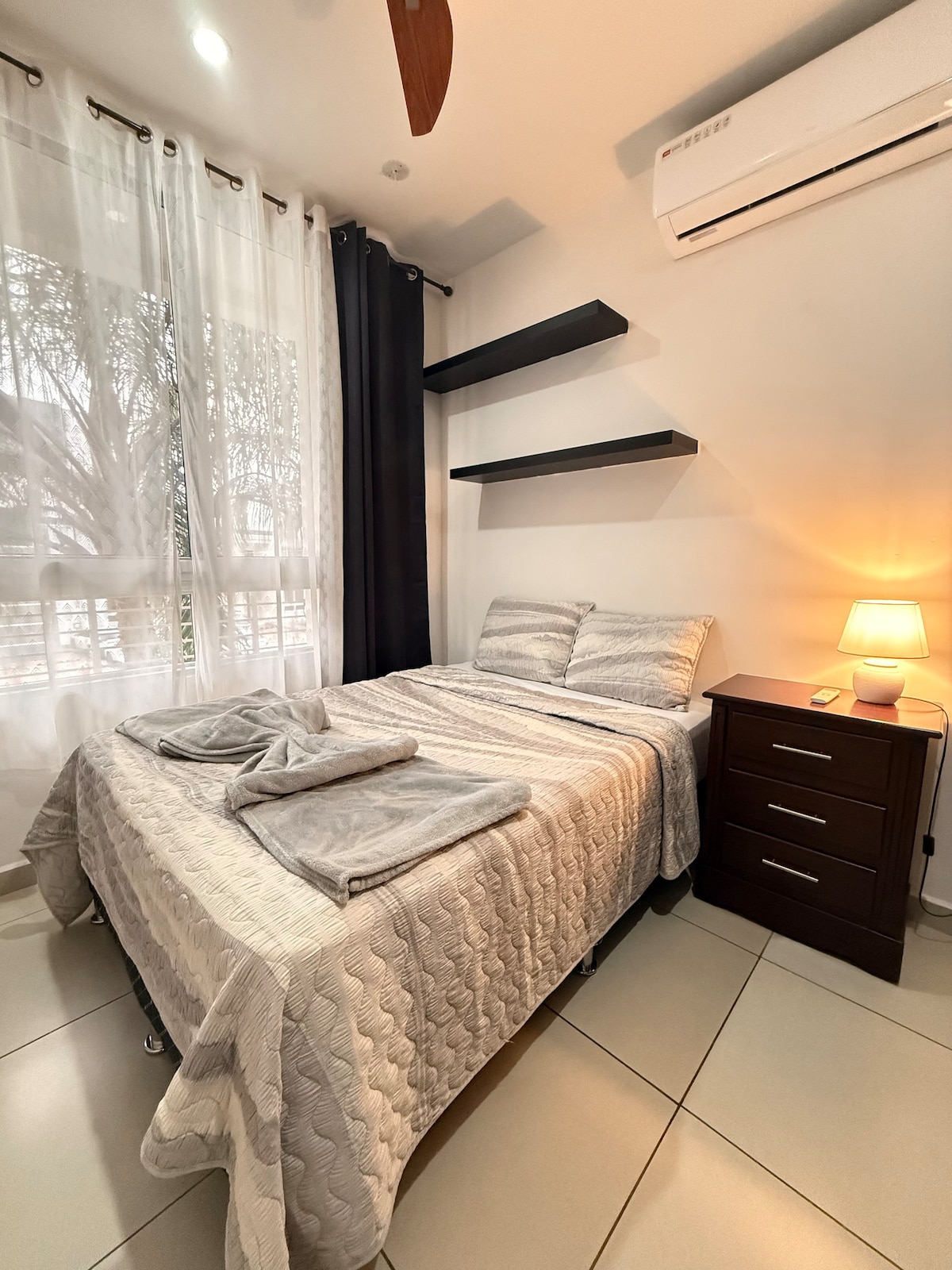 Desfrute de um lugar seguro, tranquilo e privado localizado em uma área residencial, ideal para viagens em família e viagens de negócios. Localizado a 5 minutos do shopping da cidade, a 5 minutos da zona viva, restaurantes, hospitais e muito mais. Possui 2 quartos espaçosos, 2 banheiros completos, cozinha equipada, estúdio, lavanderia interna, além de um grande pátio e estacionamento. Tem todos os serviços básicos, TV a cabo, Wi-Fi, ar condicionado em toda a casa, água quente, máquina de lavar louça.