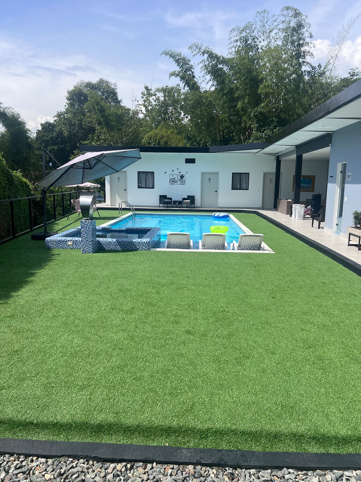 LINDA SOFIA AVANI é uma vila de campo exclusiva em Sopetran, com o estilo e o conforto de Linda Sofía. Uma propriedade tradicional redesenhada com toques modernos, projetada para descanso e conforto. Tem 4 quartos com ar-condicionado, um banheiro privativo e ventilador, uma sala de estar, uma cozinha totalmente equipada, uma área de lavanderia e um estacionamento privativo. Desfrute de sua piscina, banho turco, salão social e grandes áreas verdes. Um lugar perfeito para se reconectar com a natureza, sem sacrificar o conforto.