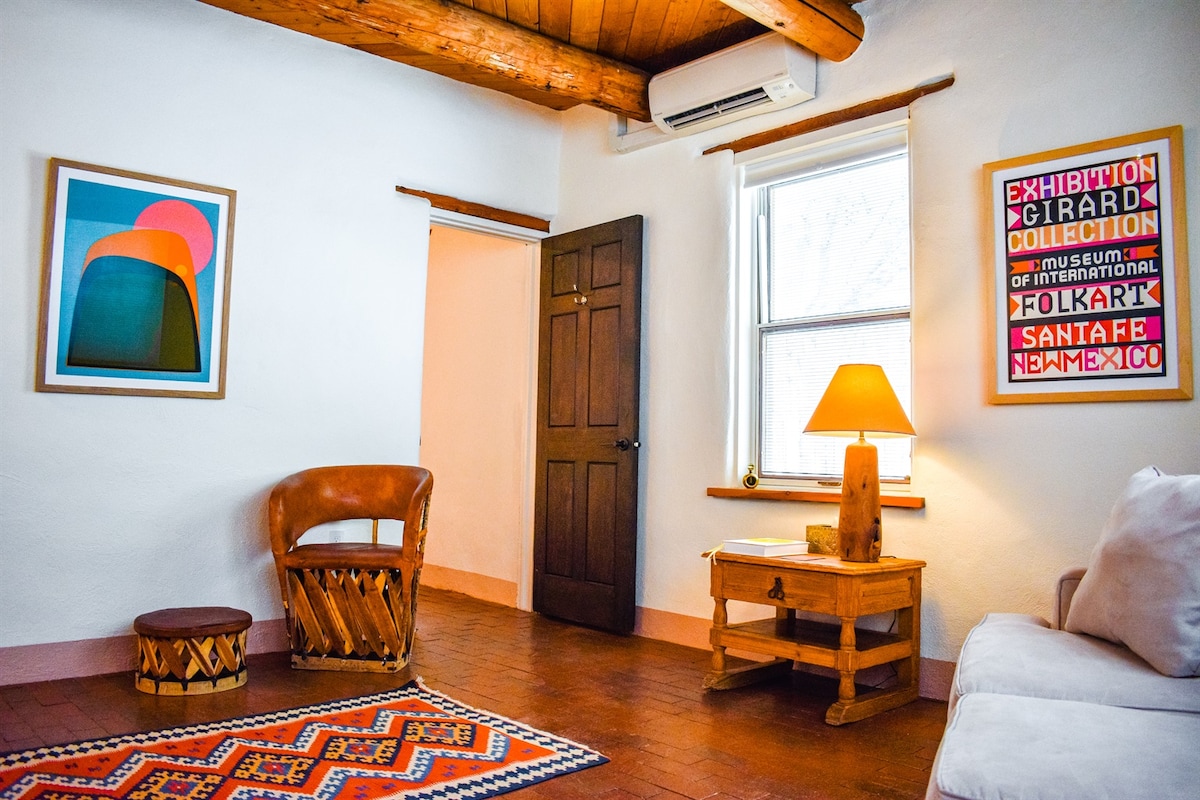 The jewel of 215 Washington oozes ‘Santa Fe modern.’ The “Pippa” is a one of a kind space and guests are raving about the beds, linens, and coffee options. The penthouse comes with a full kitchen and sleeps up to four guests. Stretch out on the oversized leather couch and take in the suite’s mid-century modern furniture, hip photography, Navajo-style rugs and Oaxacan tiles. The building is just steps from the Santa Fe Plaza and all the restaurants, bars and shops Santa Fe has to offer.