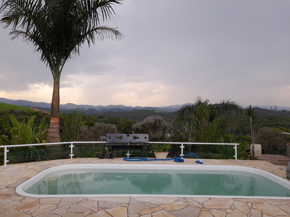 Chácara com vista panorâmica cinematográfica. Foi toda reformada e está toda completa, com Wi-Fi e todos os canais liberados, bem como churrasqueira, piscina e ventiladores em todos os cômodos. Varanda bem ampla com gramado impecável no território do imóvel. Perfeito para famílias com crianças que desejam relaxar diante de uma vista linda e panorâmica. Temos caseiros na chácara que realizam as manutenções do gramado e piscina diariamente para que tudo fique maravilhoso sempre !