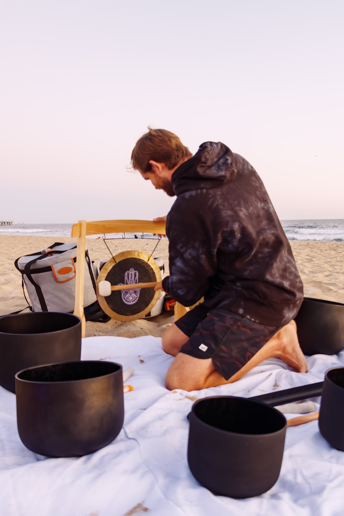 Ofereço ioga yin com tigelas de som, gongos e flautas, para ajudar você a se conectar com a natureza na praia ao pôr do sol!